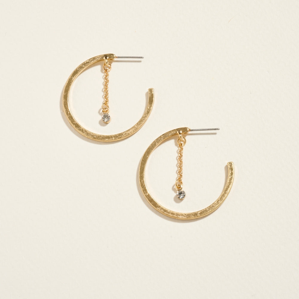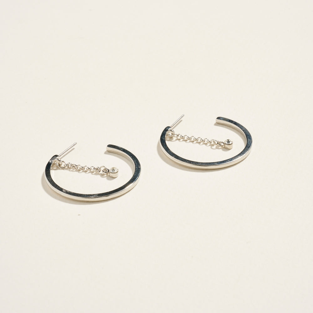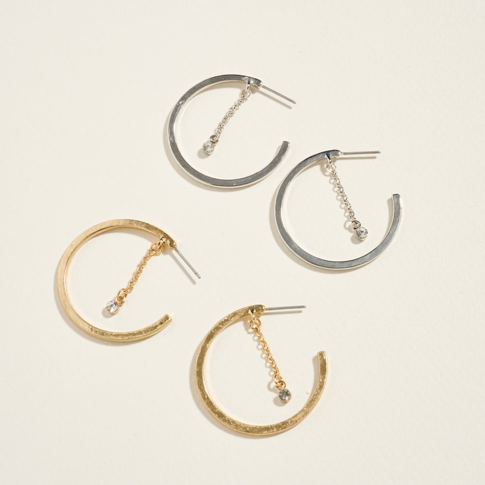 A fresh twist on classic hoops, these earrings feature rhinestone chain accents that catch the light beautifully. Their 1.25-inch size offers understated glamour ideal for any occasion.
