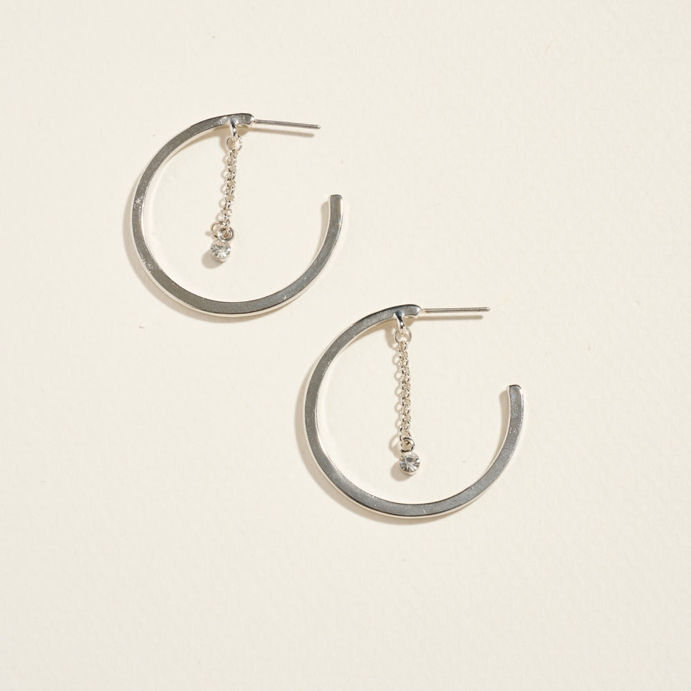 1.25 Inch Hoop Rhinestone Chain Post Earrings