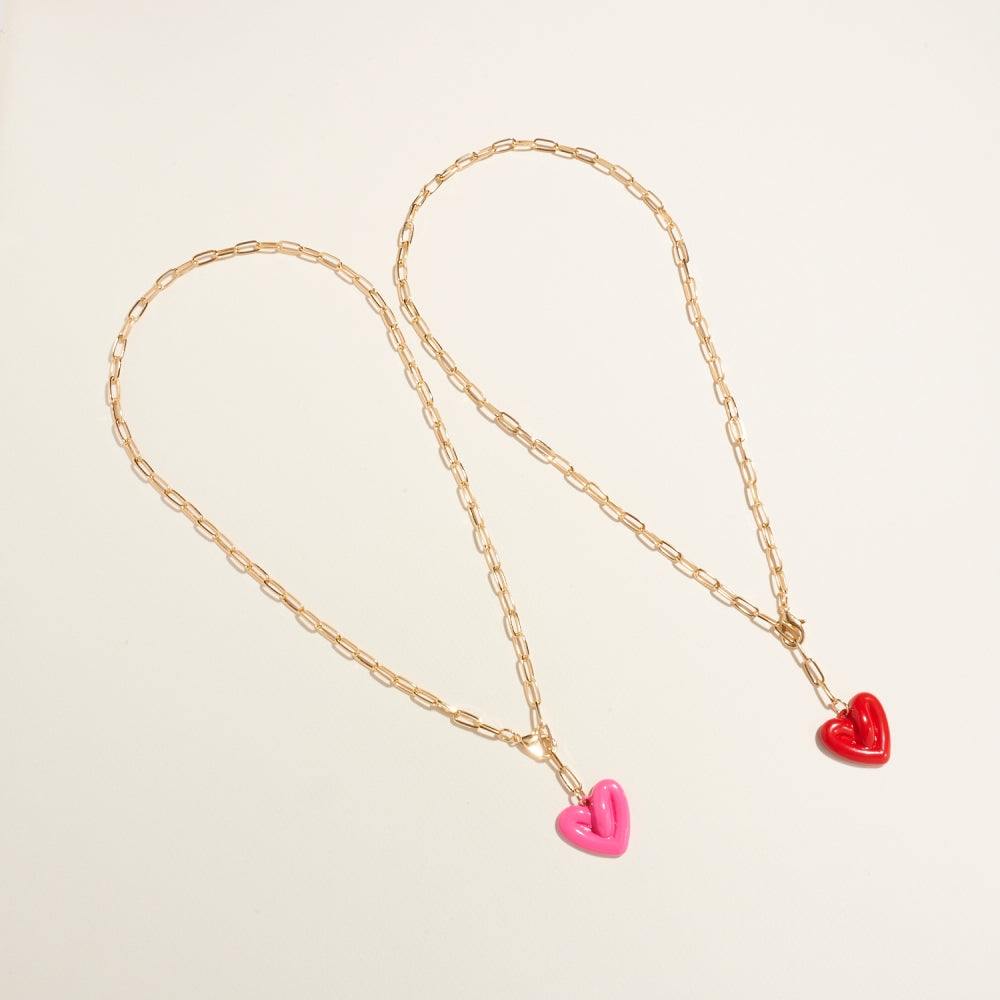 21 Inch Puffy Heart Pendant Chain Necklace Jewelry