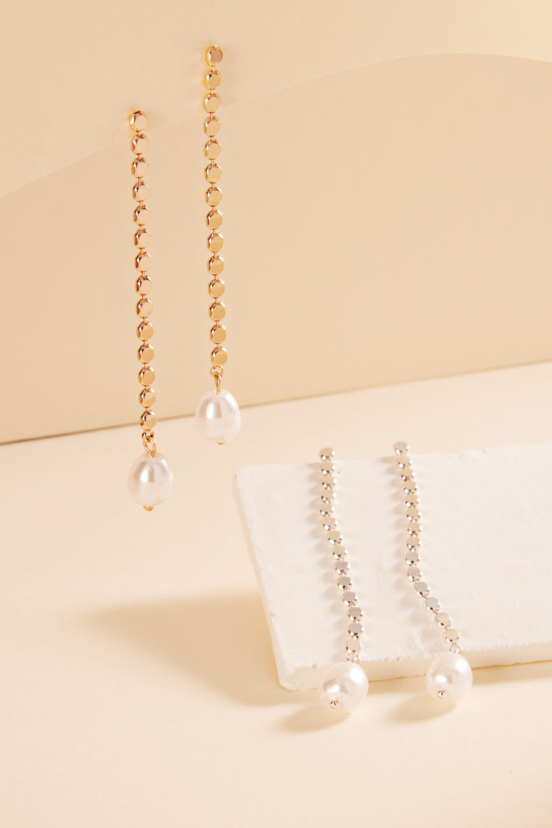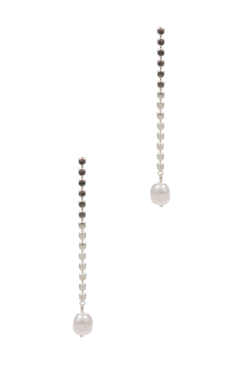 Flat Chain With Pearl Post Earrings