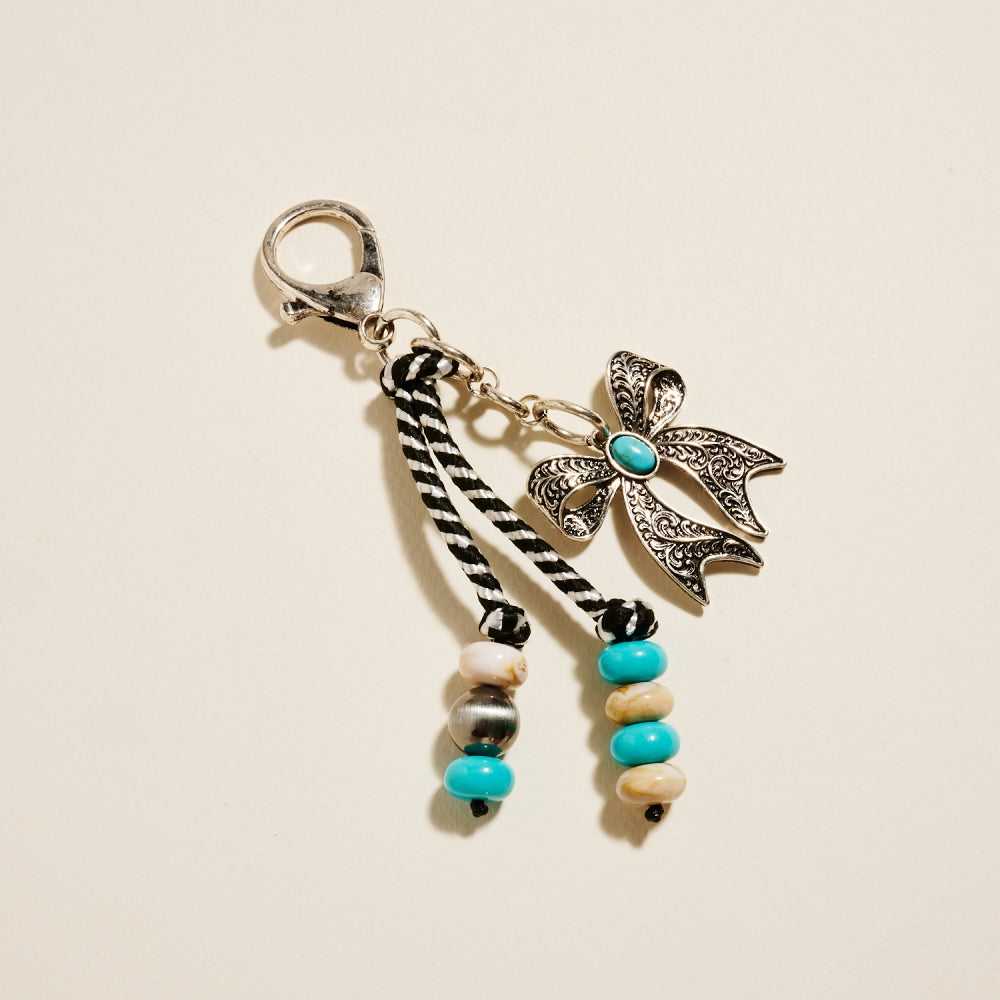 Semi Precious Bow Ribbon Beads Bag Charm Keychain