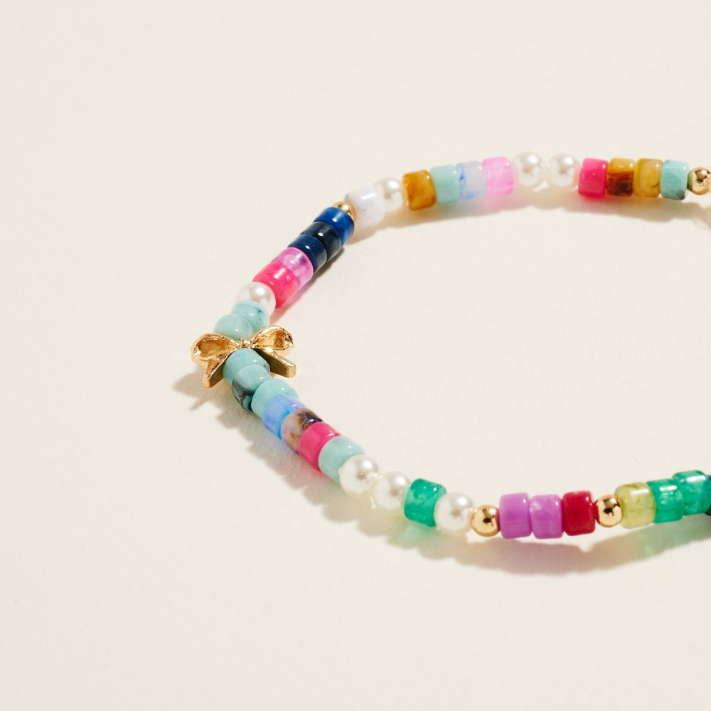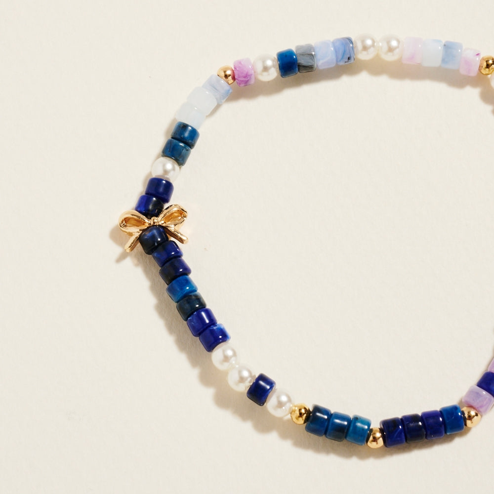 7.25 Inch Mixed Bead Pearl Bow Stretch Bracelet