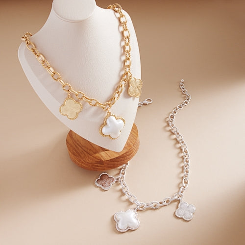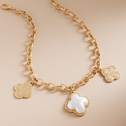 Clover Shaped Multi Charm Short Necklace