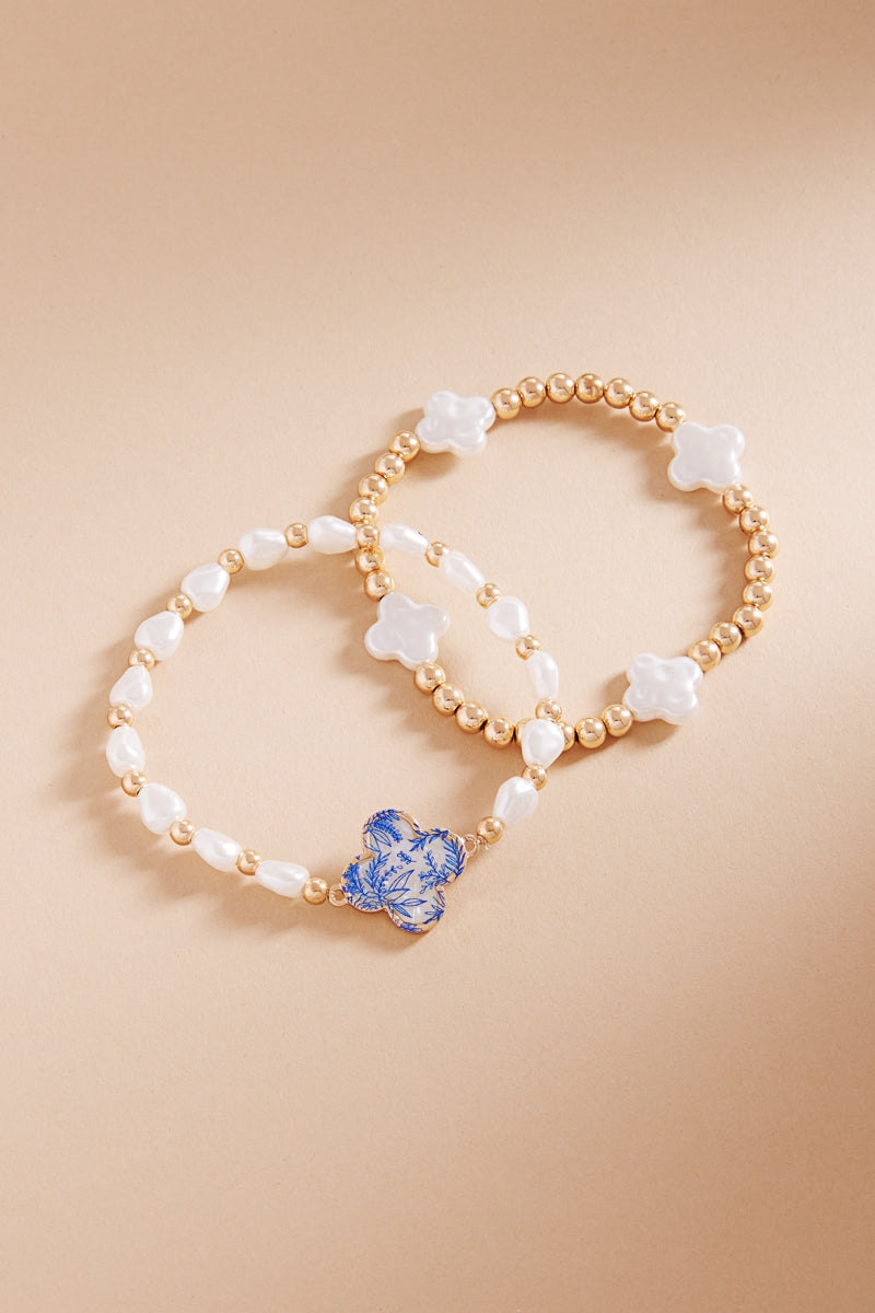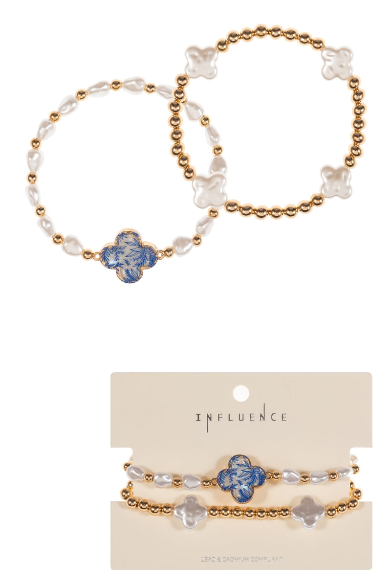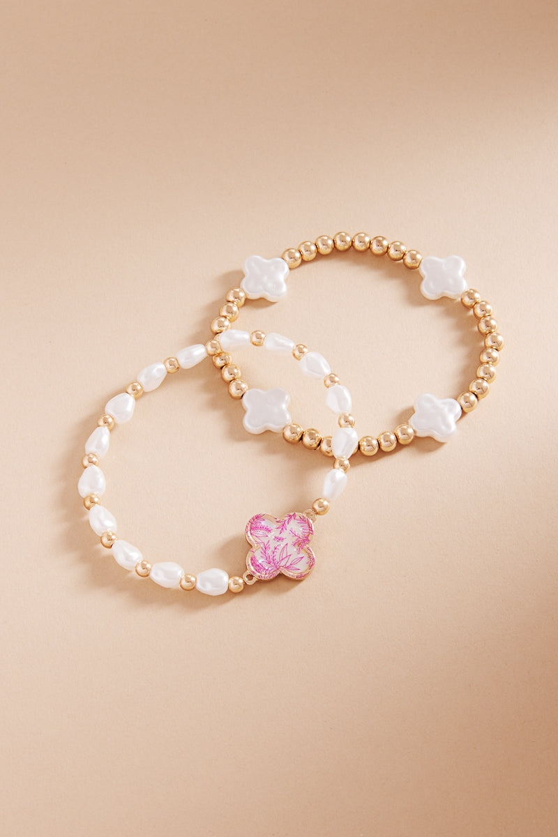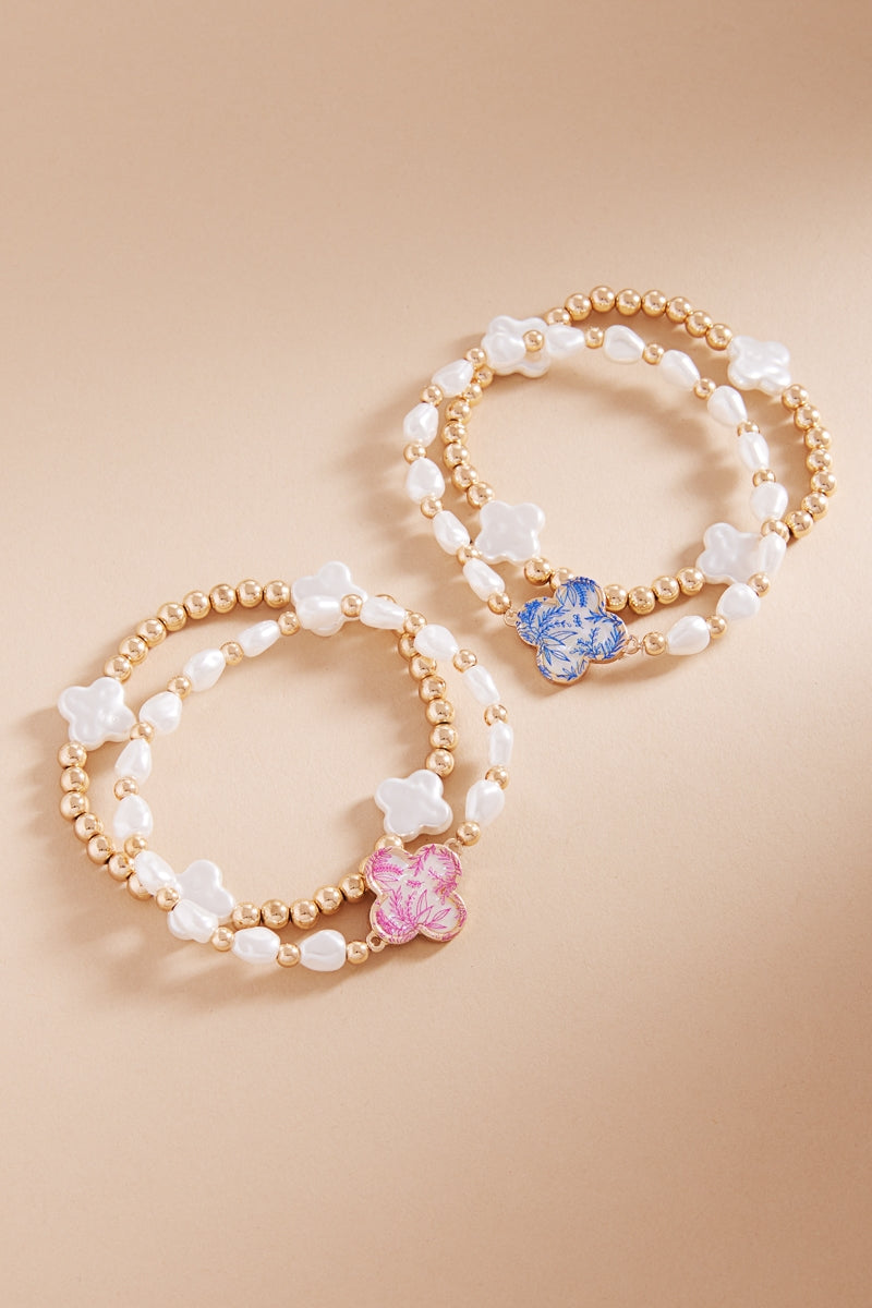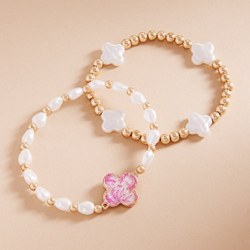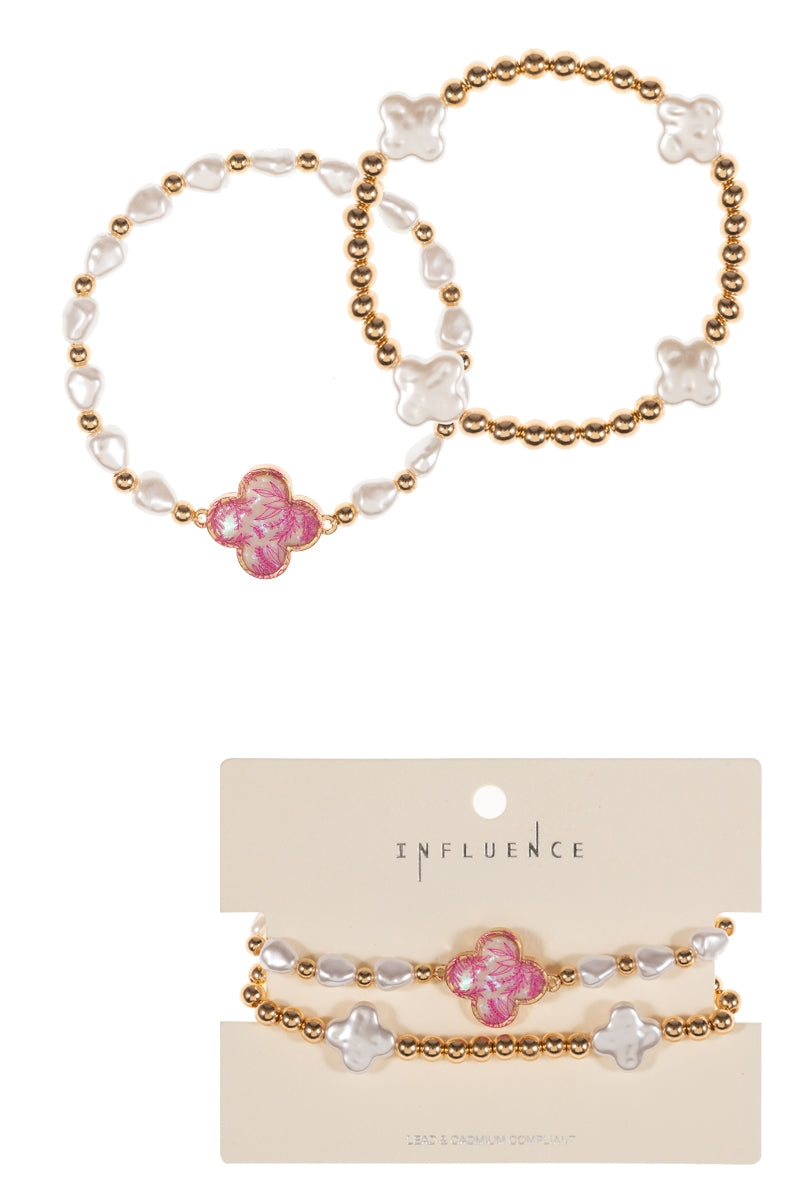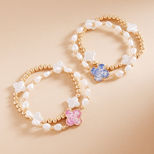 Floral Shell Effect Paper Quatrefoil Stretch Bracelet