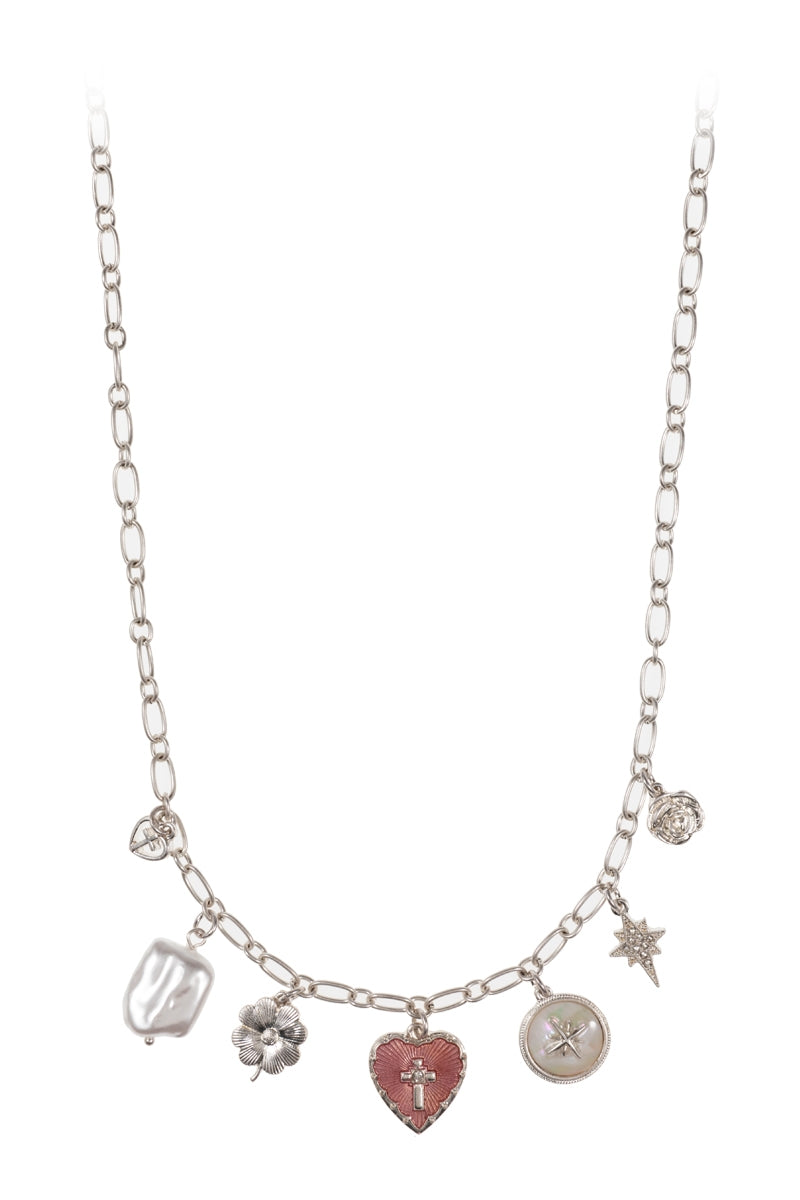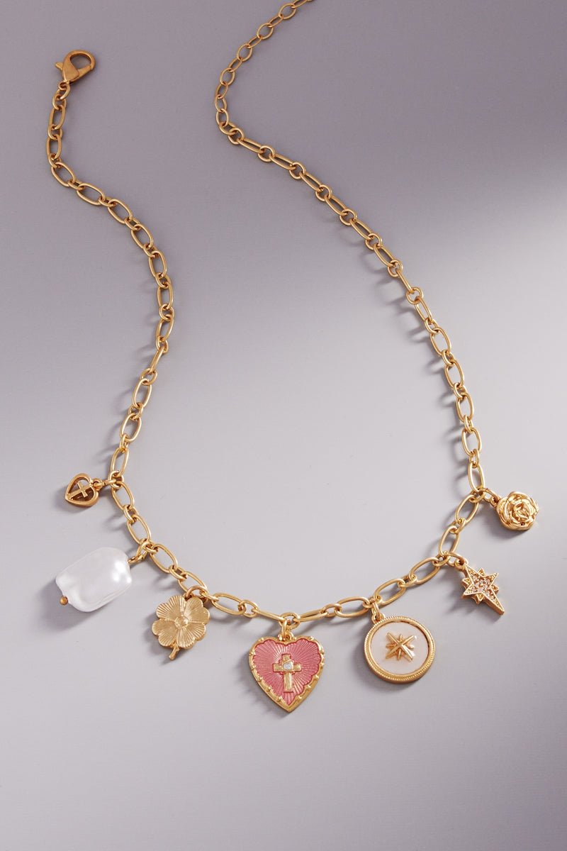 Heart Pearl Star Metal Mixed Charm Short Necklace