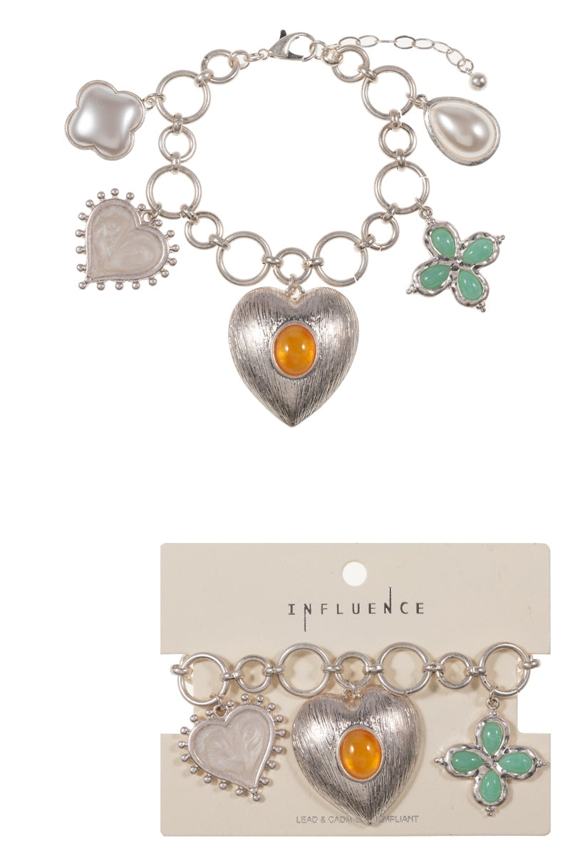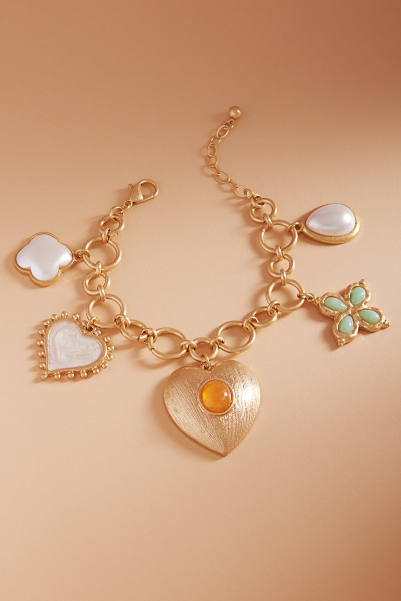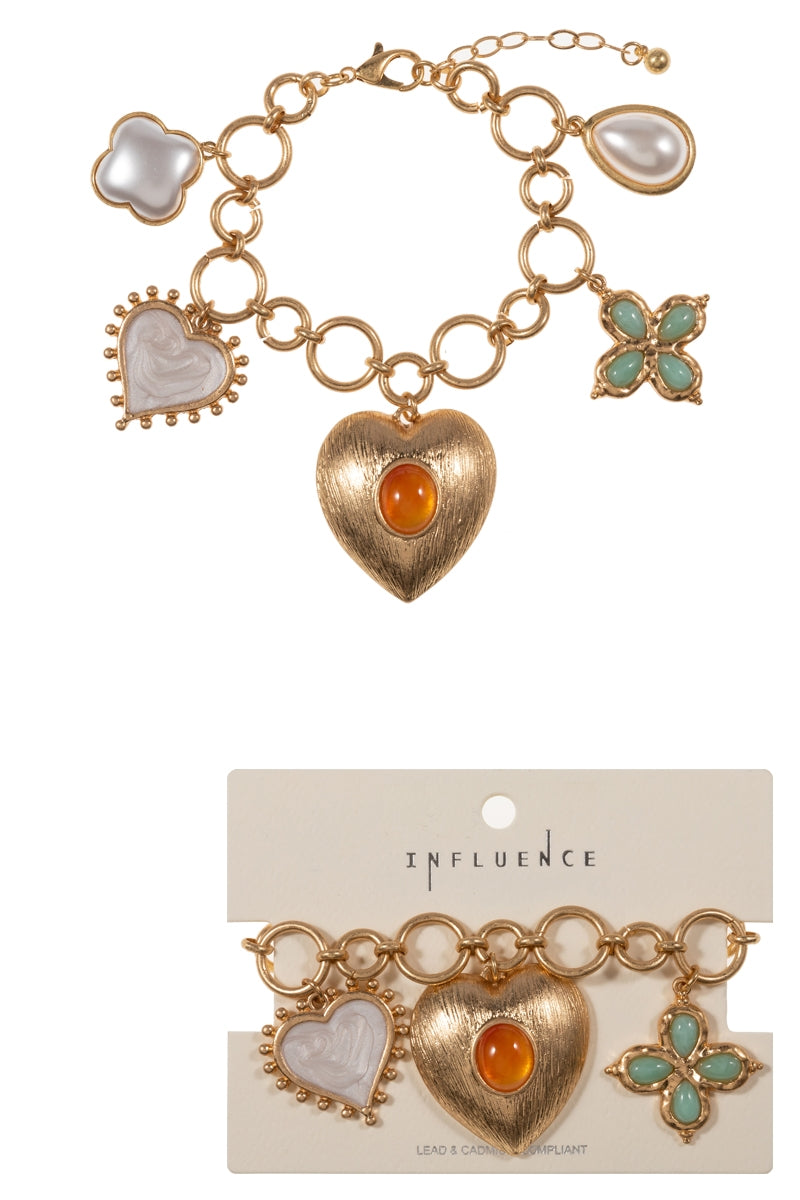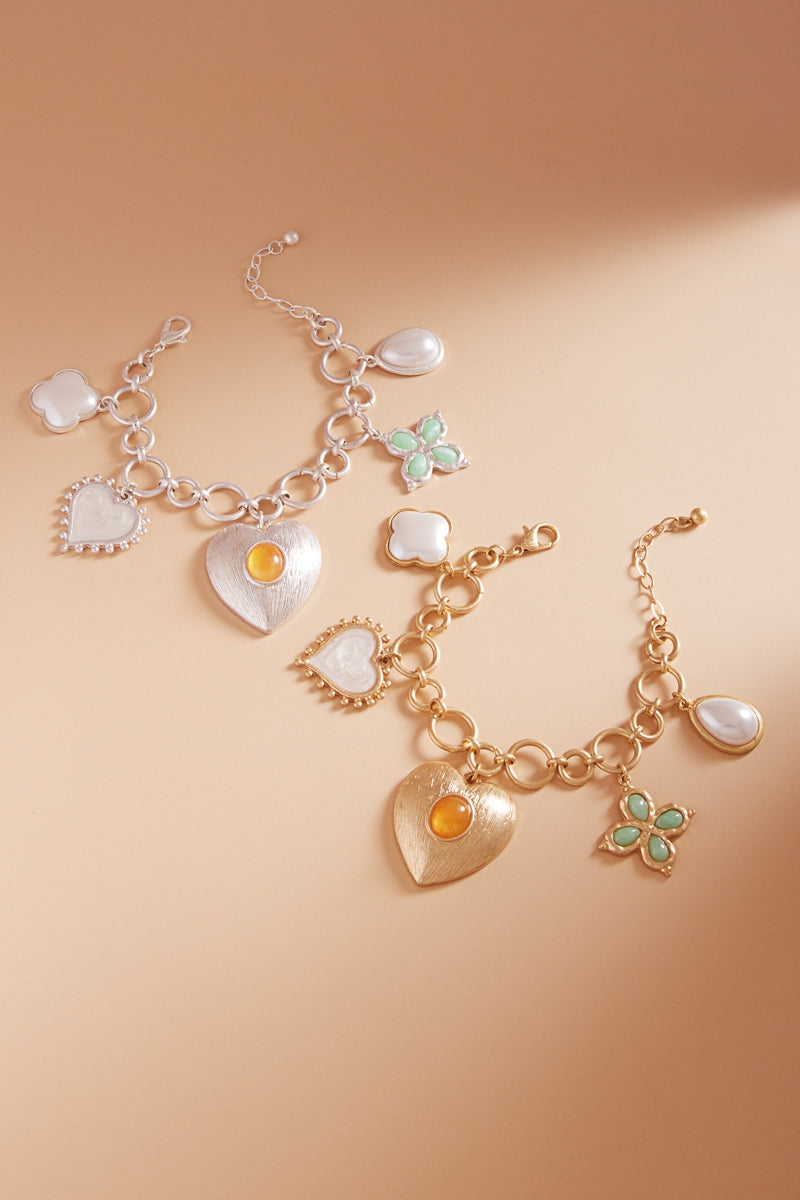 Multi Metal Pearl Charm Cluster Clasp Bracelet