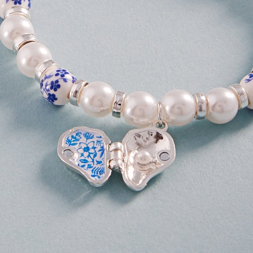 Oyster Locket Pearl Ceramic Bead Stretch Bracelet