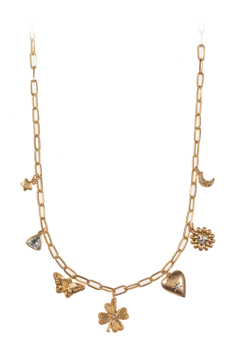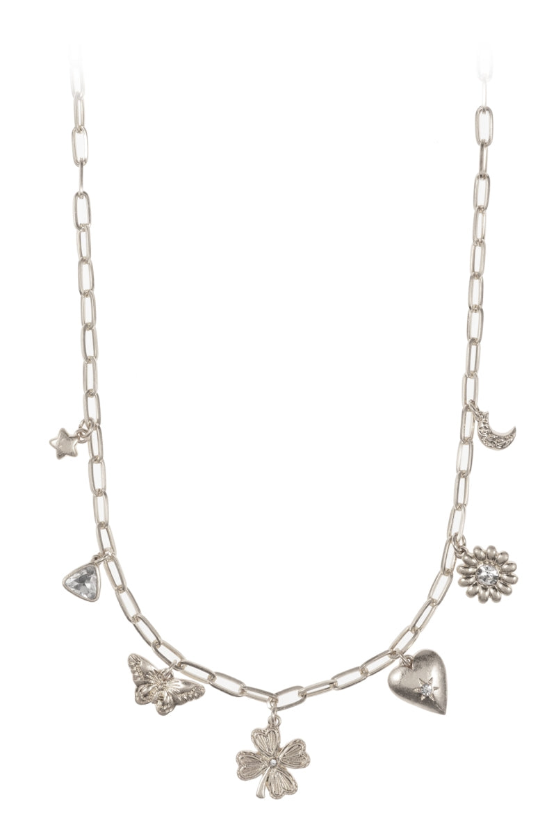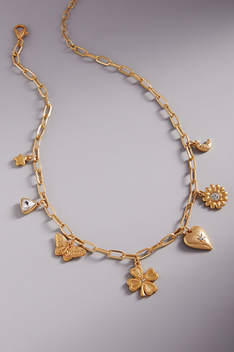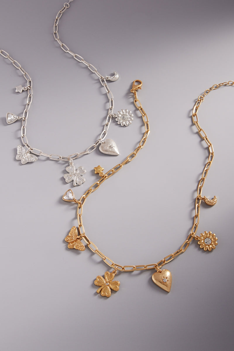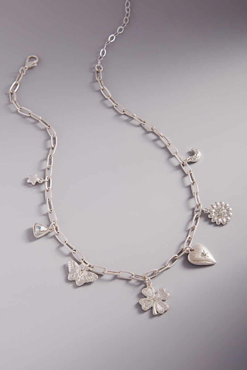 Quatrefoil Basic Metal Mixed Charm Short Nekclace