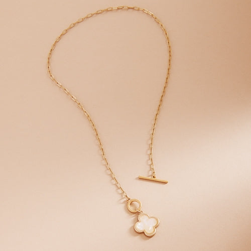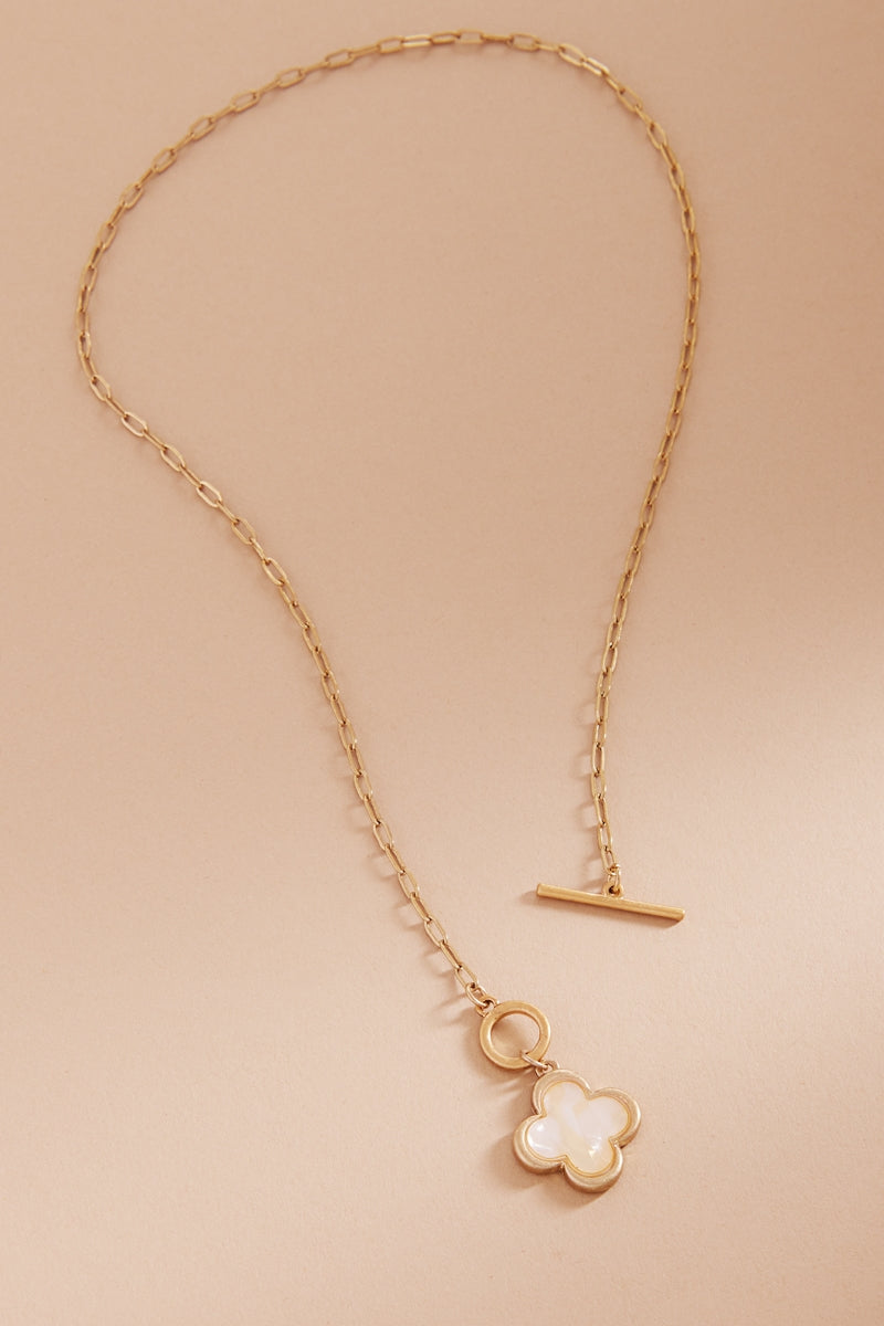 Quatrefoil Shell Effect Paper Charm Short Necklace