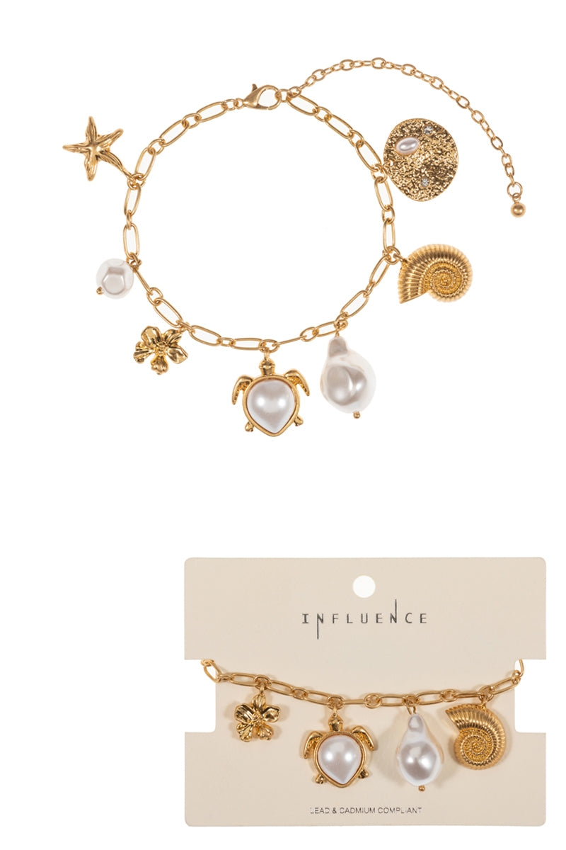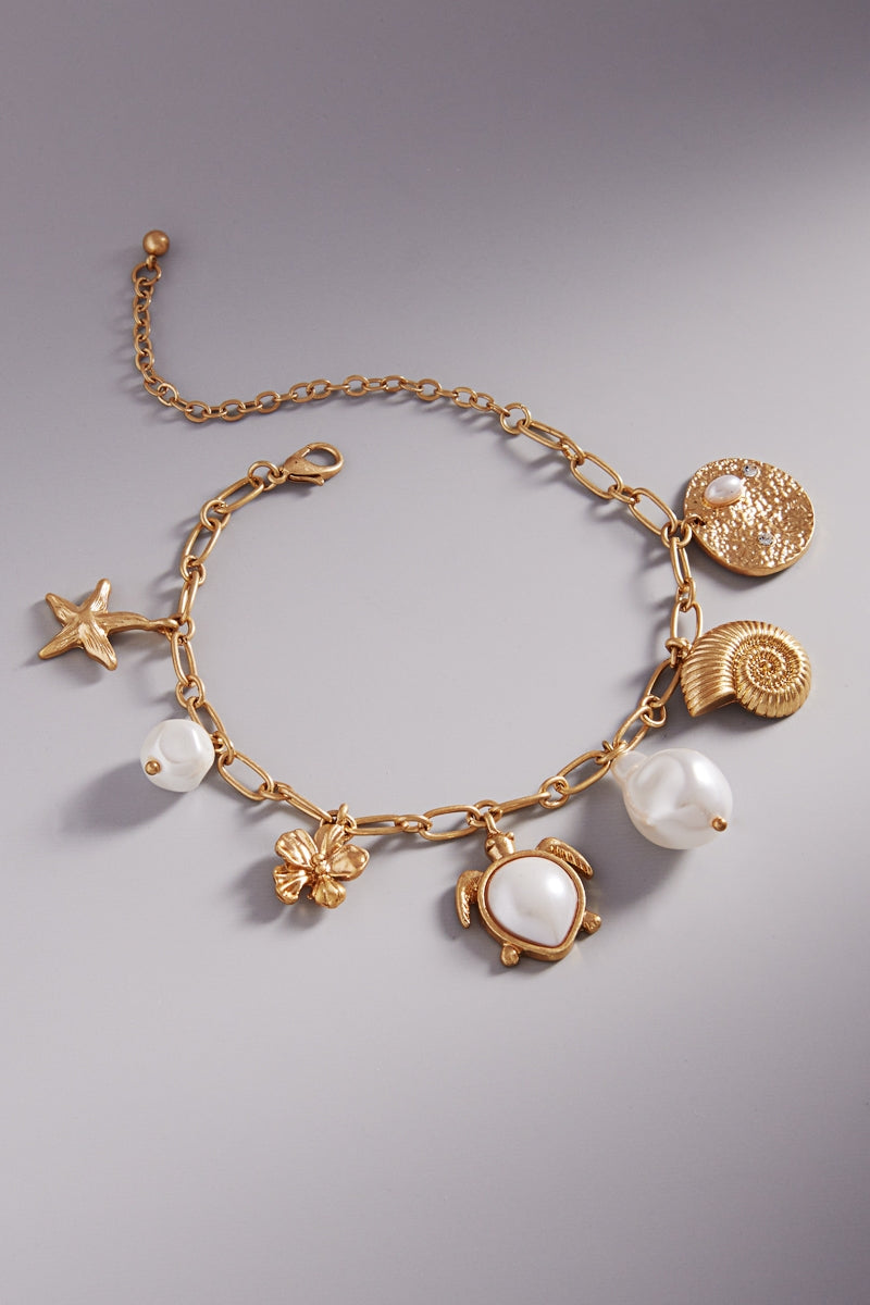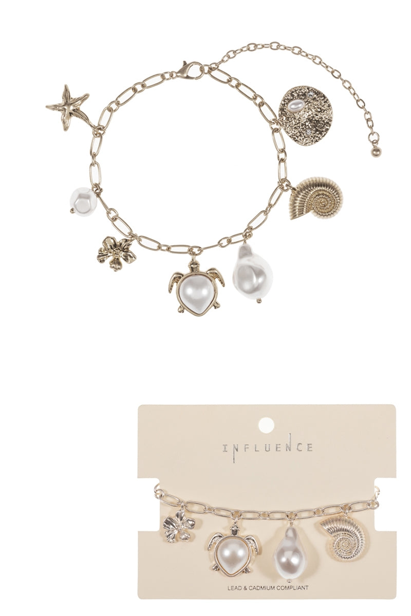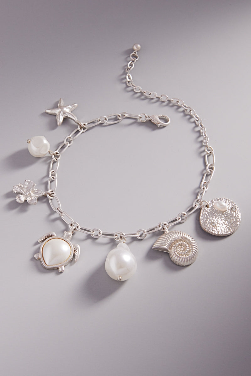 Sealife Vintage Metal Pearl Charm Clasp Bracelet