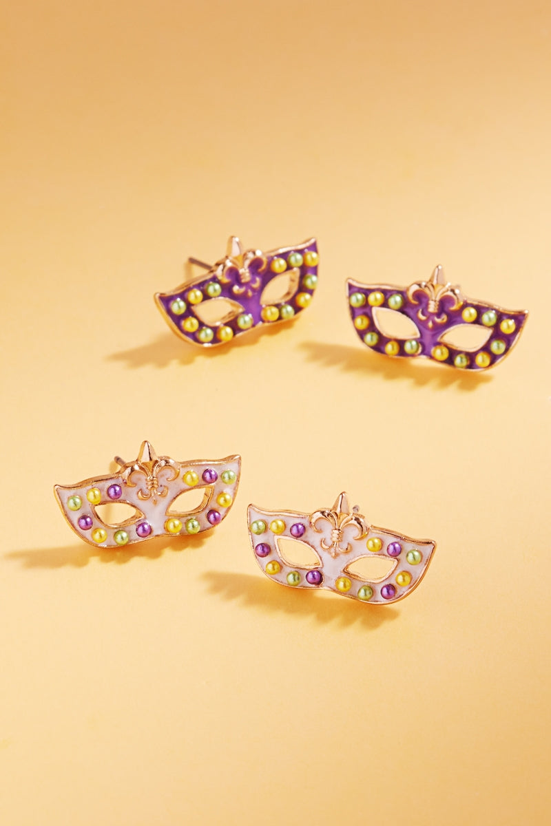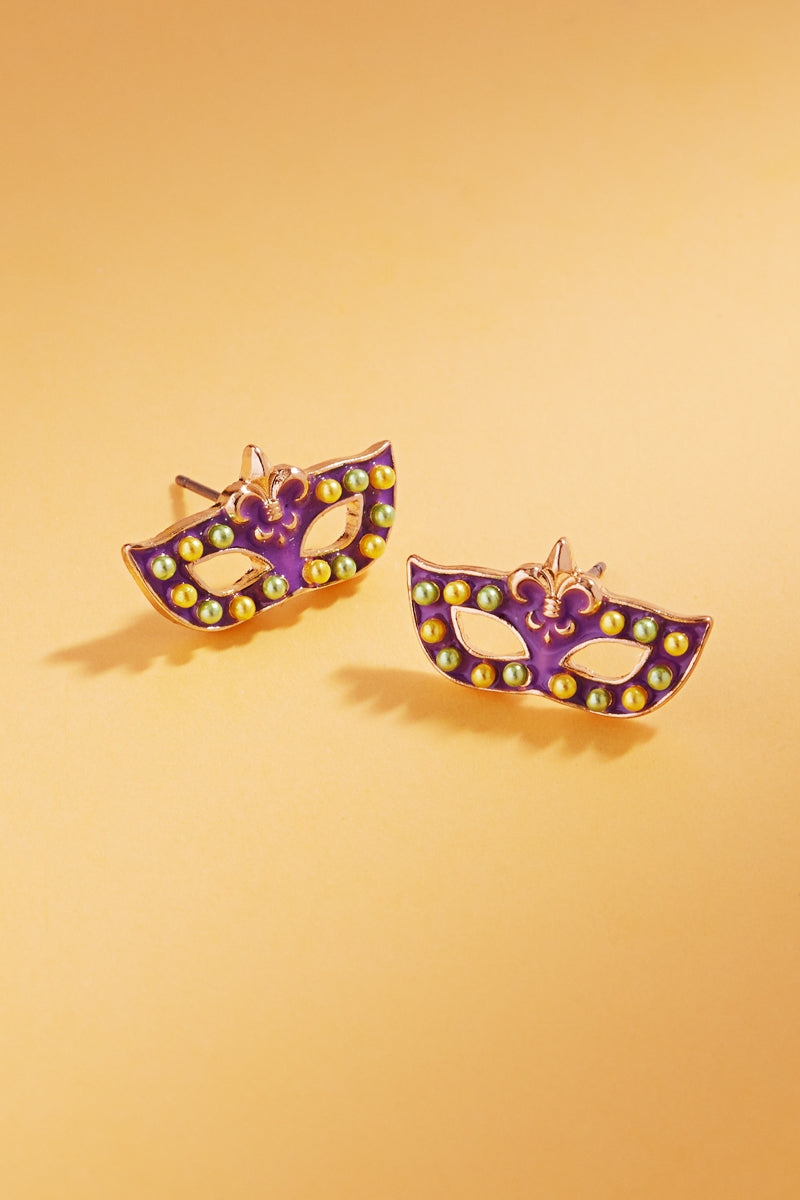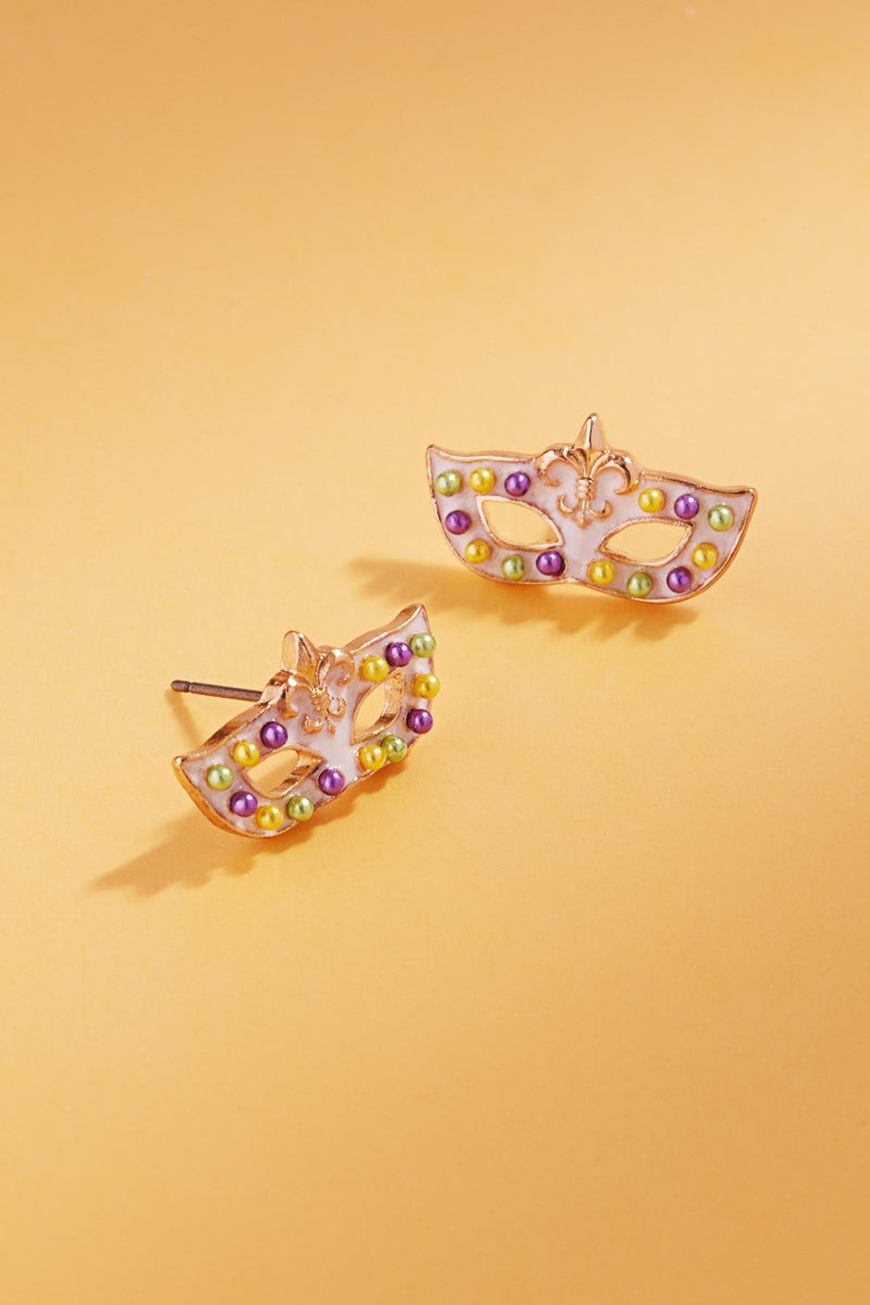 Mask Mardi Gras Color Enamel Pearls Post Earrings