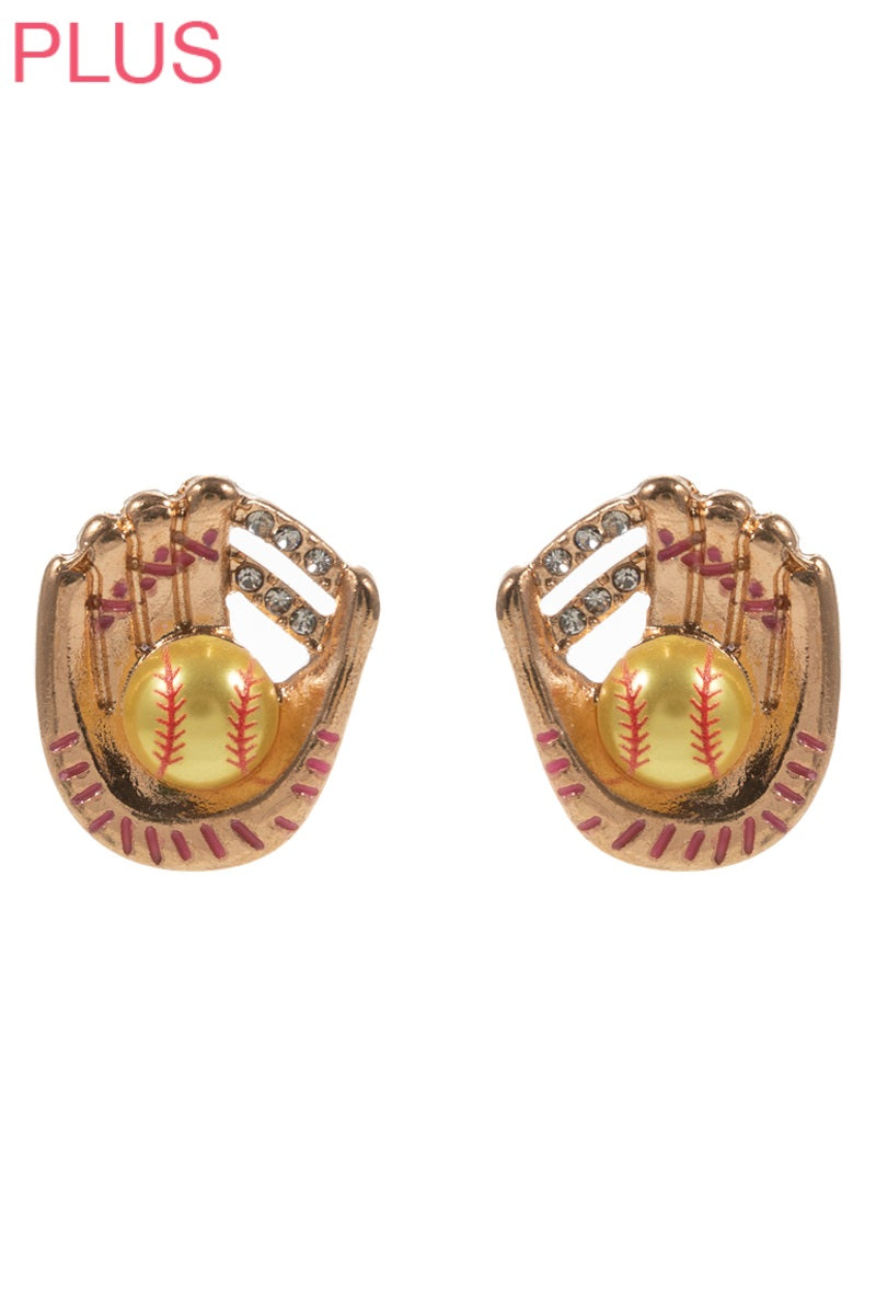 Sports Ball Shaped Pearl With Gloves Post Earrings