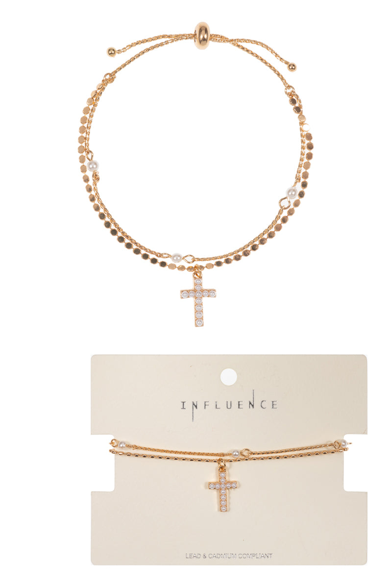 Cross With Delicate Multi Layer Pull Tie Bracelet