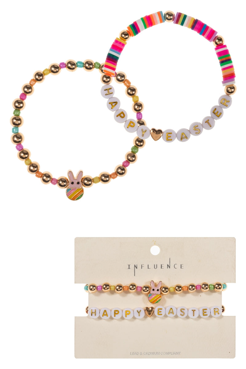 Easter Bunny Enamel Mixed Beaded Stretch Bracelet