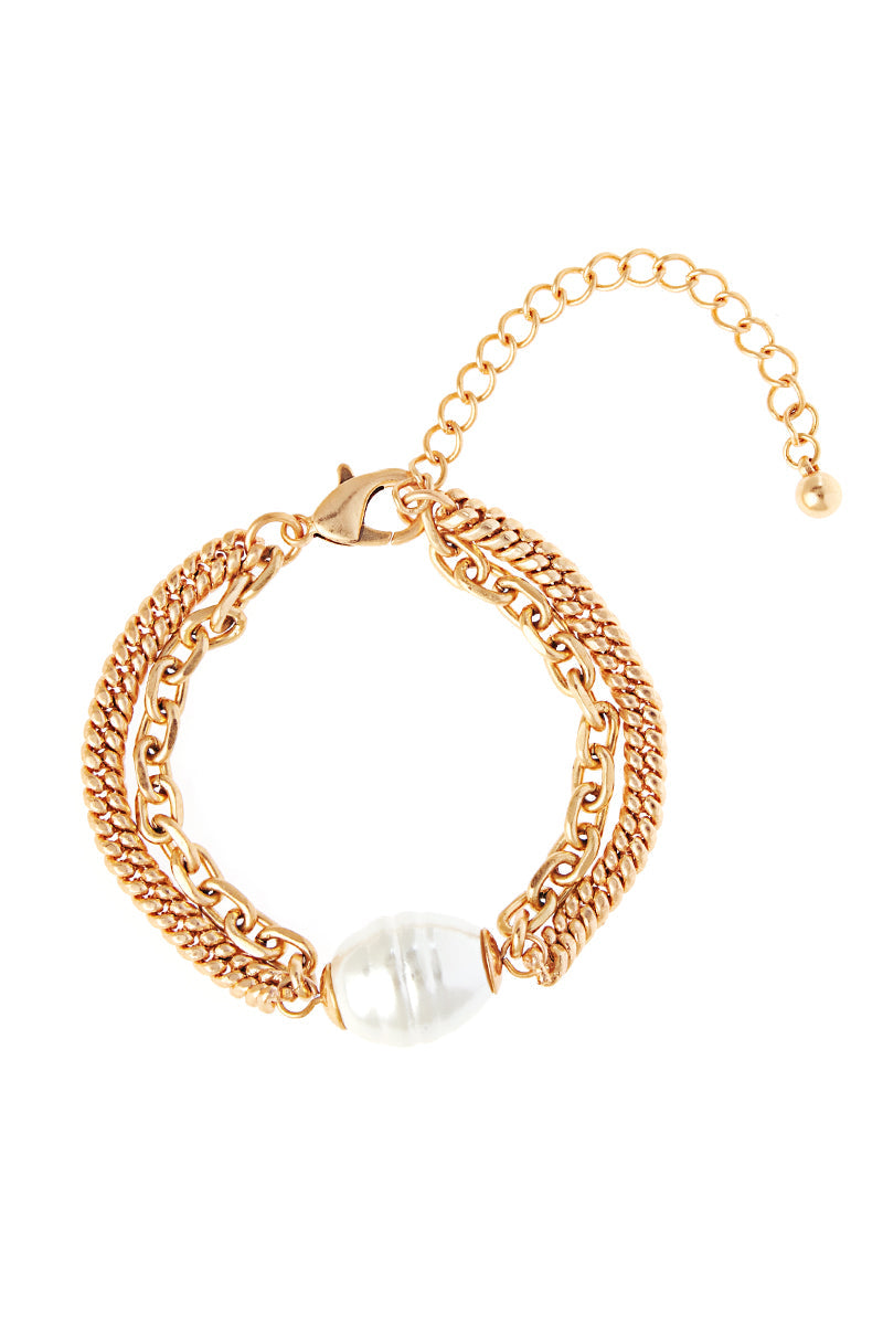 Glass Pearl Brass Chain Adjustable Clasp Bracelet