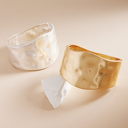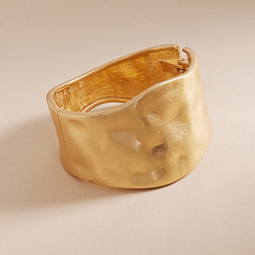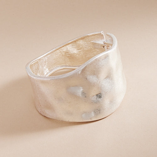 This elegant bangle bracelet features a unique hammered texture and is made from high-quality organic metal. The 7.25 inch length ensures a comfortable fit for most wrists, while the metal hinge allows for easy wear and removal. Add a touch of sophistication to any outfit with this beautiful piece.