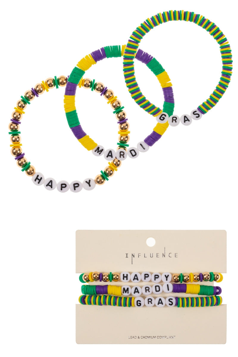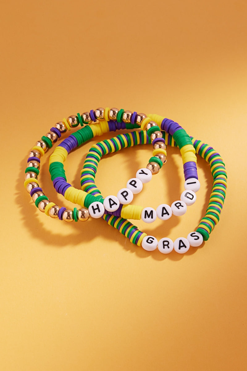 Happy Mardi Gras Rubber Beads Stretch Bracelet