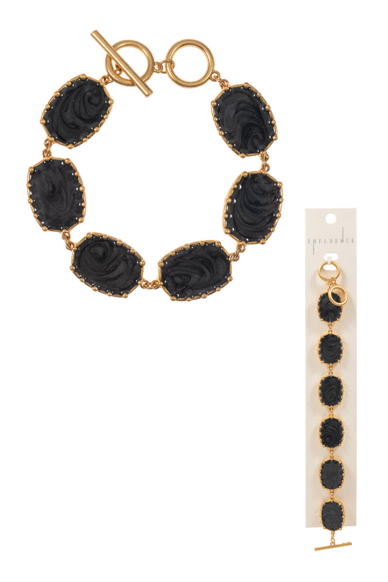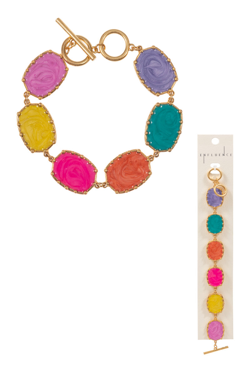 Hexagon Shaped Enamel Toggle Clasp Bracelet