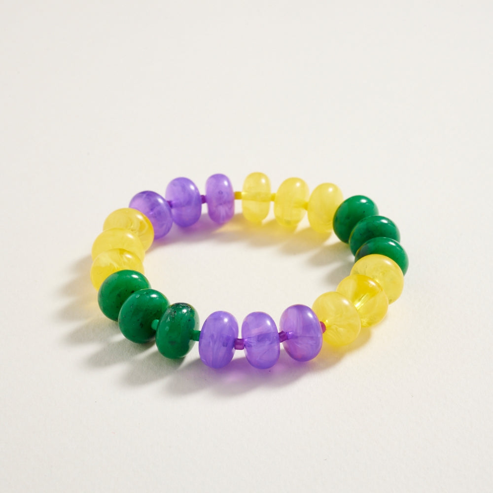 Marbled Mardi Gras Ombre Beaded Stretch Bracelet