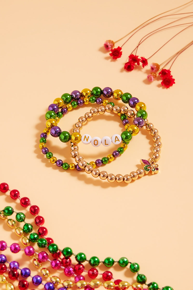Mardi Gras Color Metalic Beads Stretch Bracelet