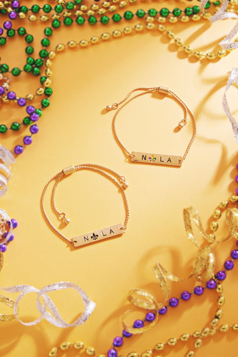 Mardi Gras Home W Fleur De Lis Pull Tie Bracelet