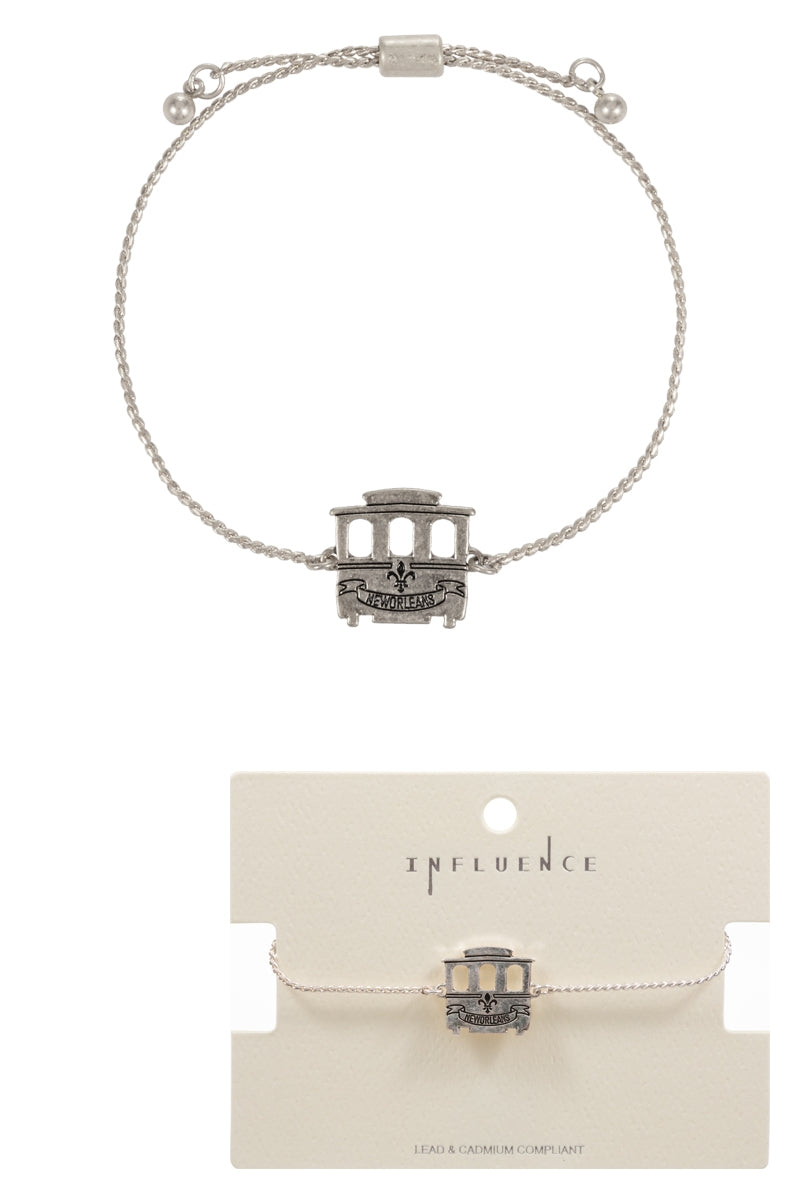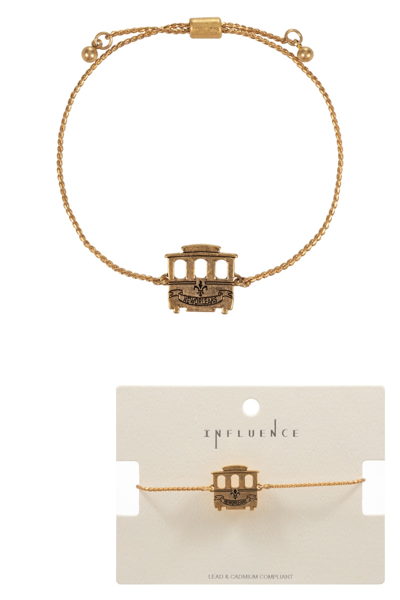 Mardi Gras Trolly Car Metal Pull Tie Bracelet