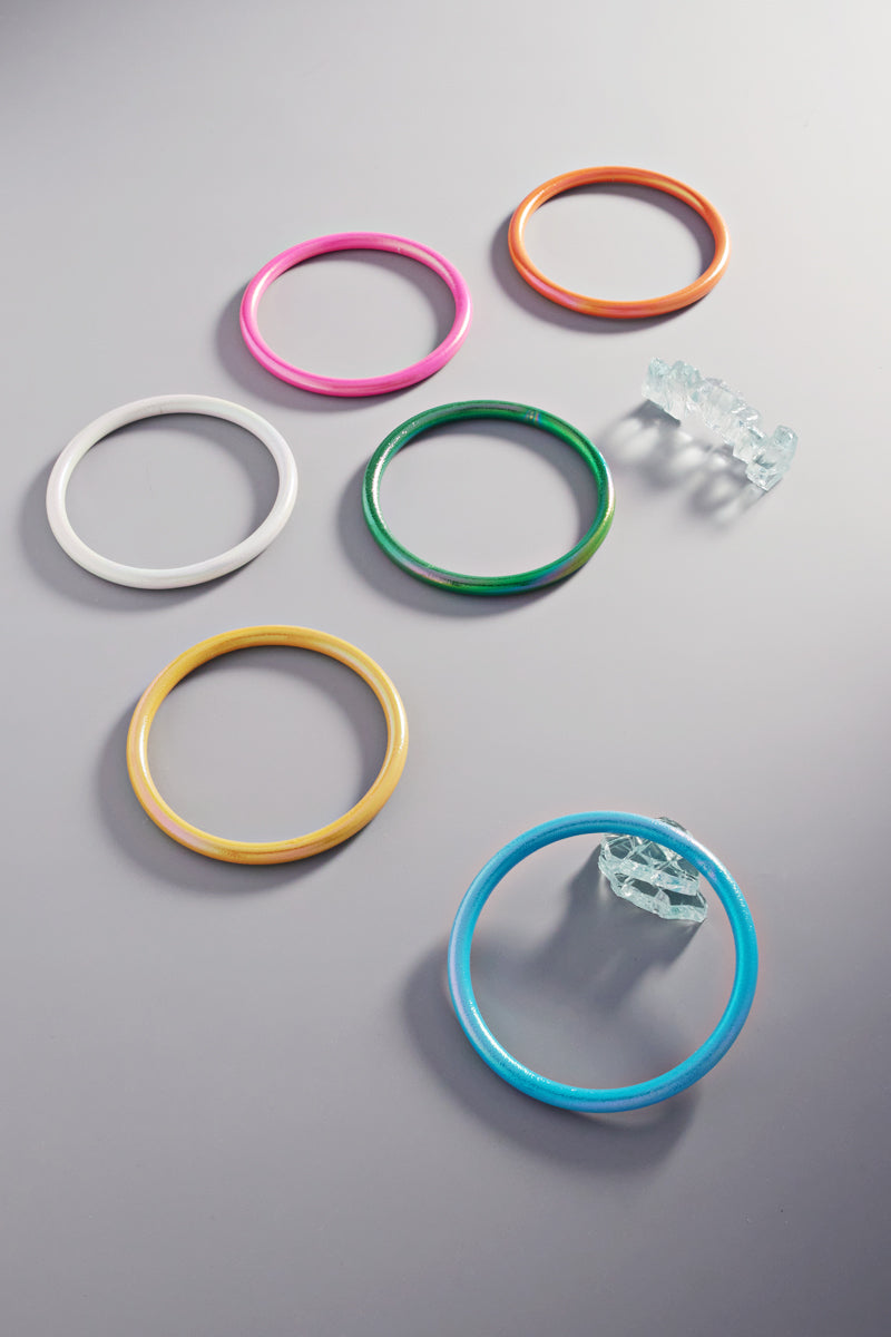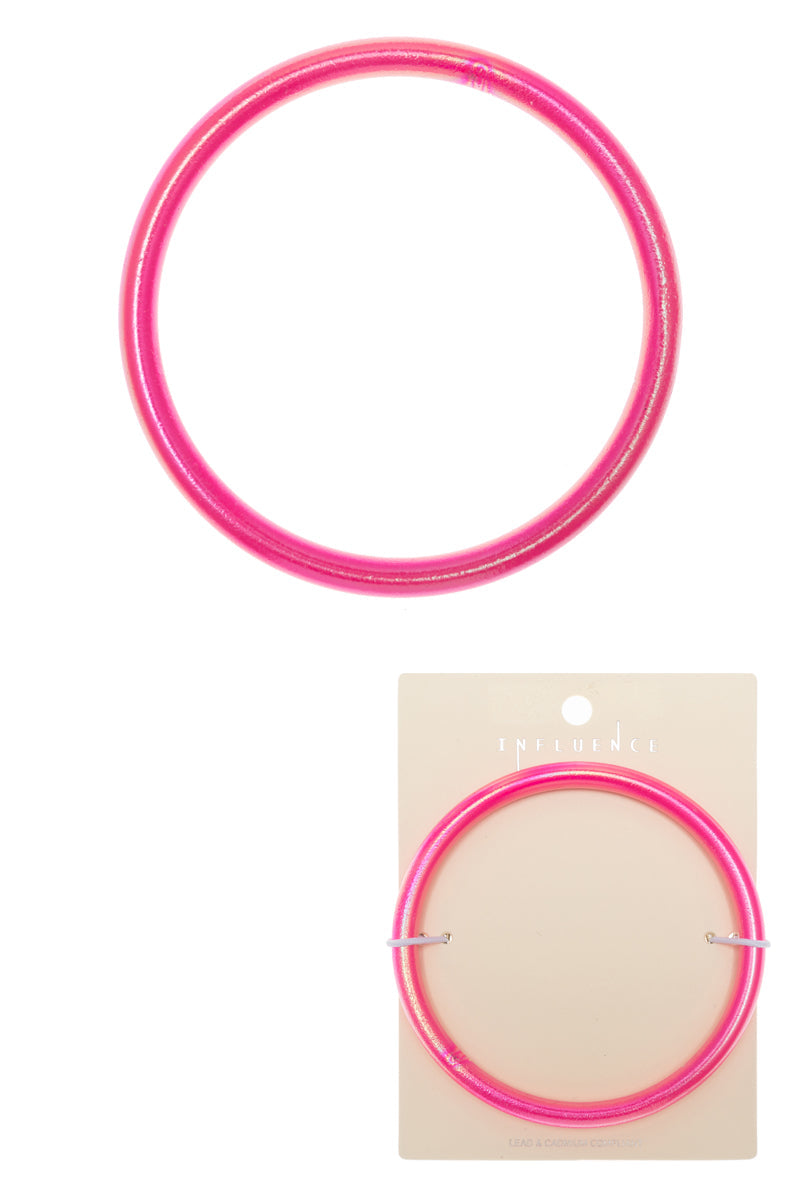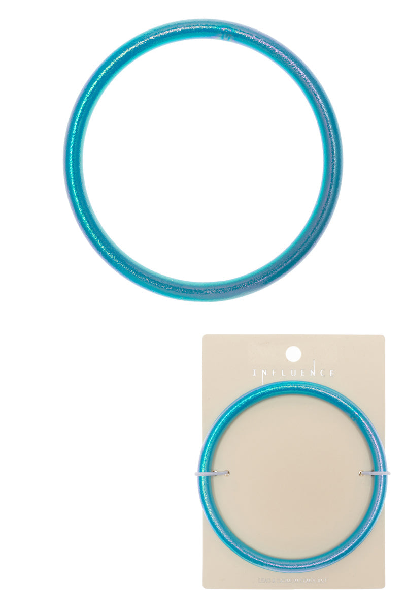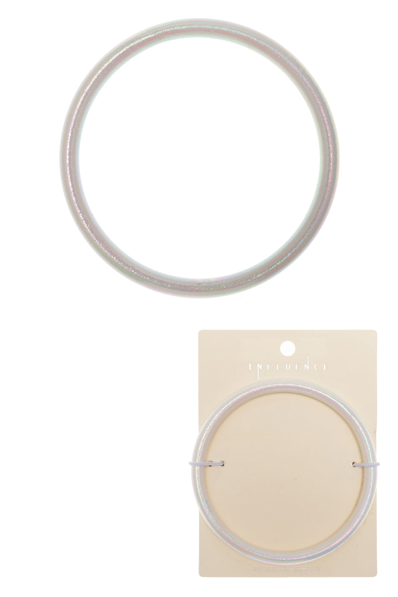 Constructed with high-quality metal, this sleek 7.25 inch bangle bracelet features a stunning iridescent coating. Perfect for adding a touch of elegance to any outfit, this bracelet is a must-have for any fashion-forward individual.