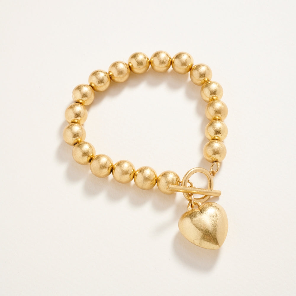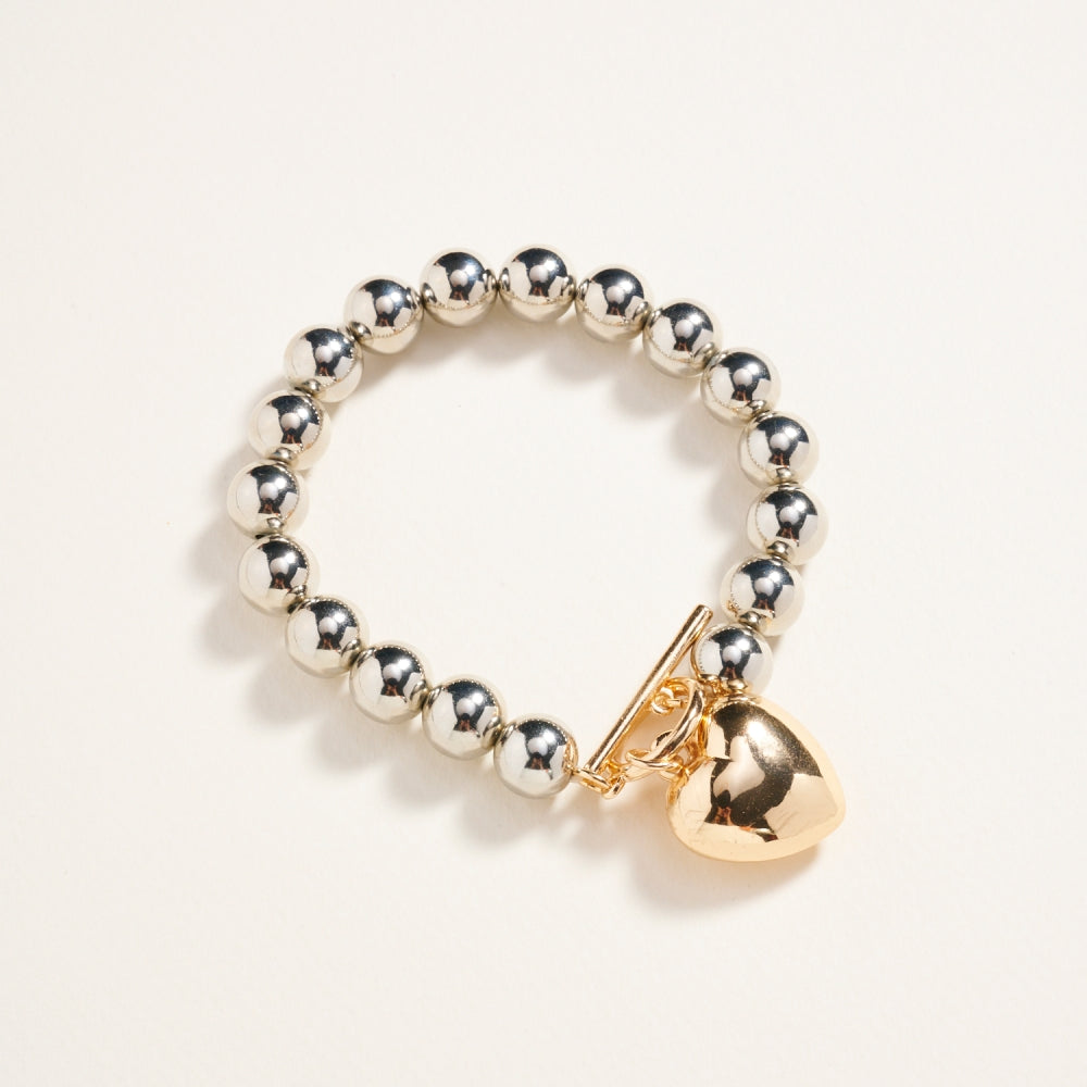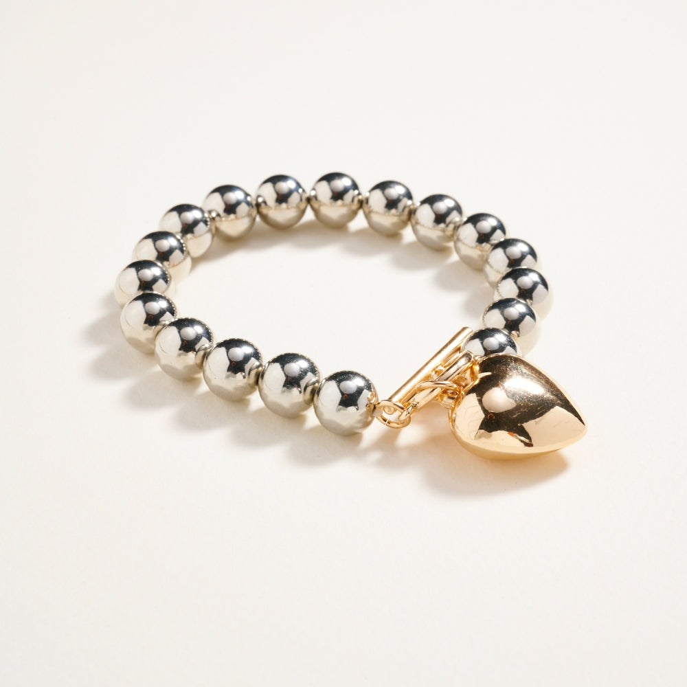 Metallic Bead Puffy Heart Stretch Bracelet