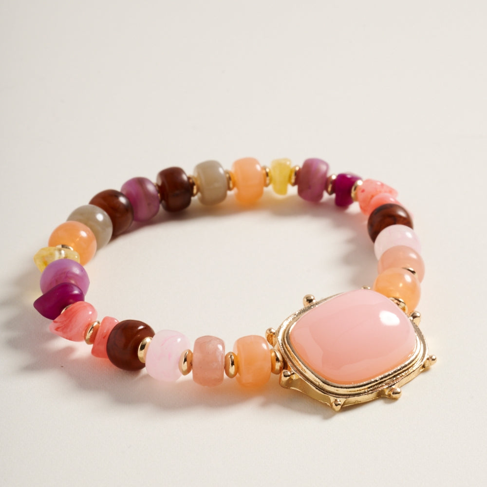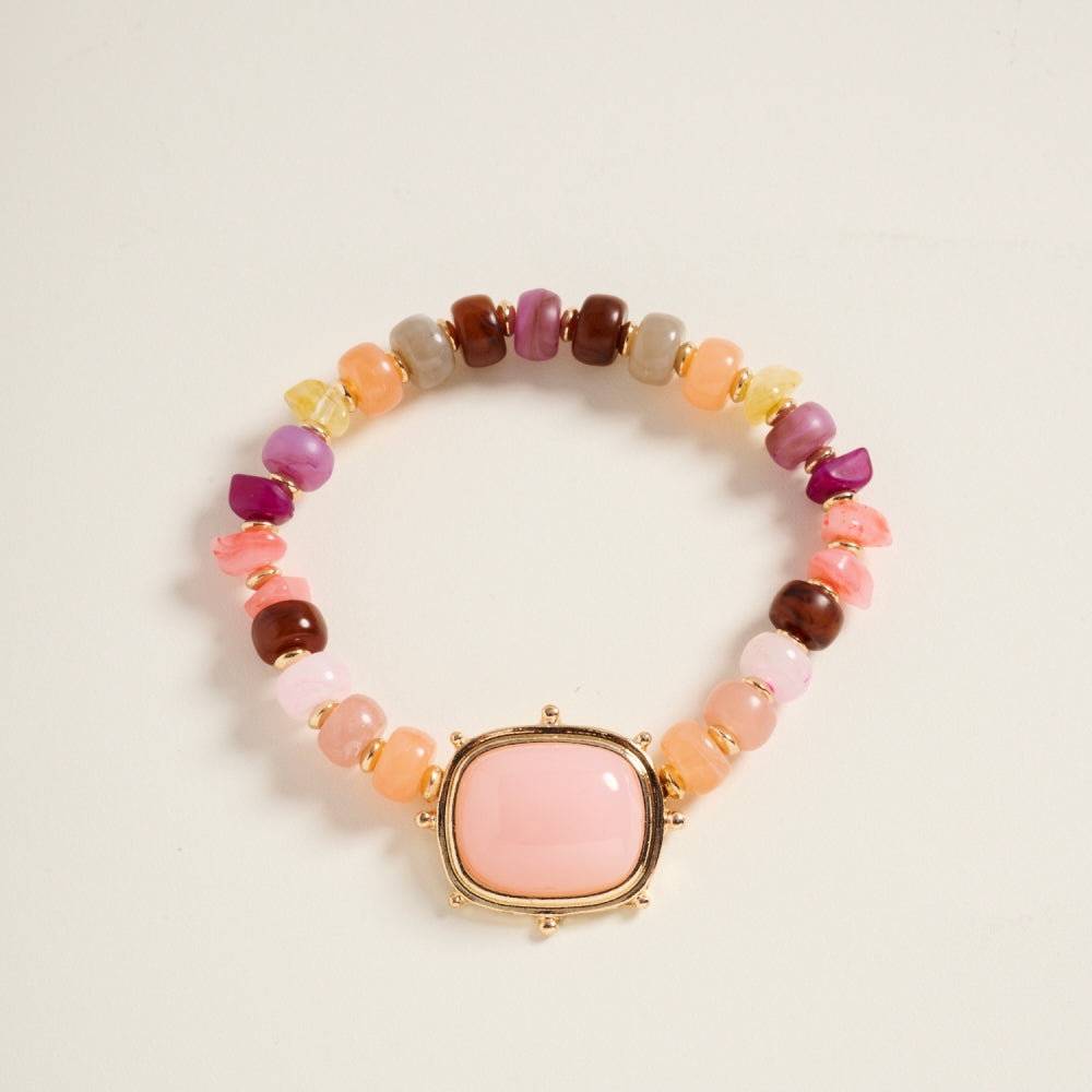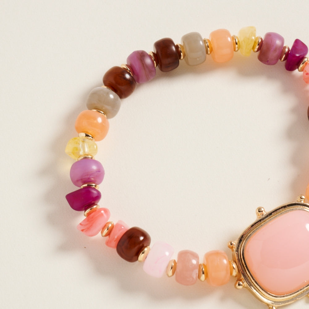 A blend of marbled and ombre tones meets modern charm in this beaded stretch bracelet. Finished with a pendant accent, its an everyday statement piece.