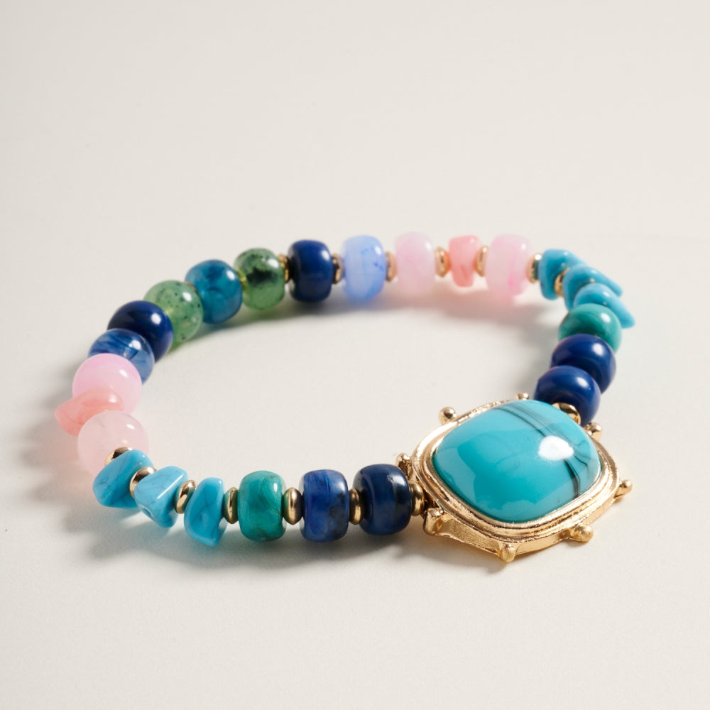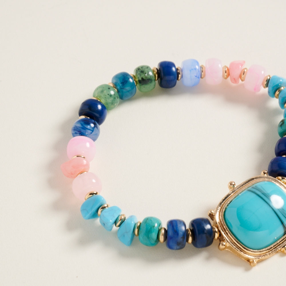 Mixed Marble Ombre Beaded Pendant Stretch Bracelet