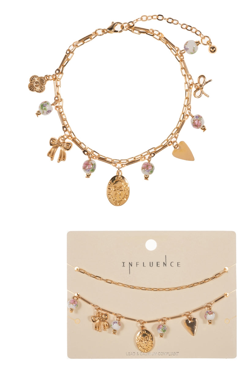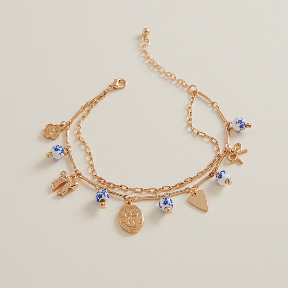 Mixed Metal Charms Ceramic W Beads Clasp Bracelet