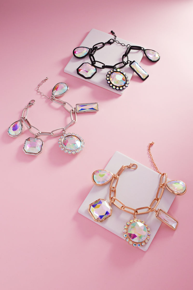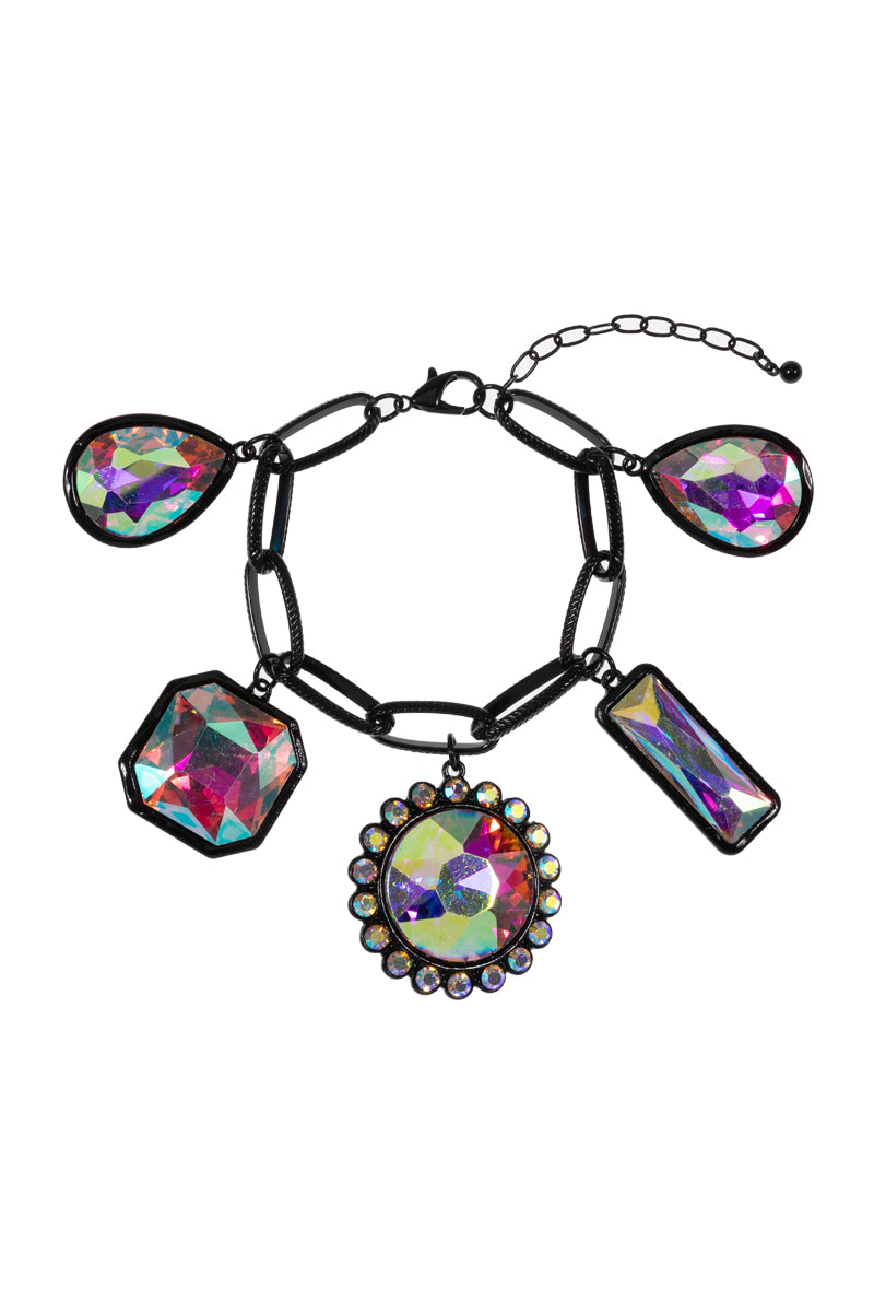 Multi Ab Coated Rhine Stone Charm Clasp Bracelet