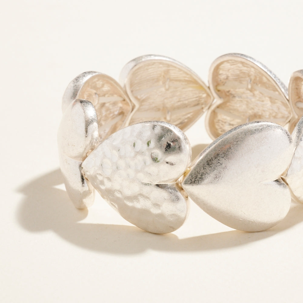 This chic bracelet features a row of polished hearts on a comfortable stretch band. A great choice for stacking or wearing on its own.