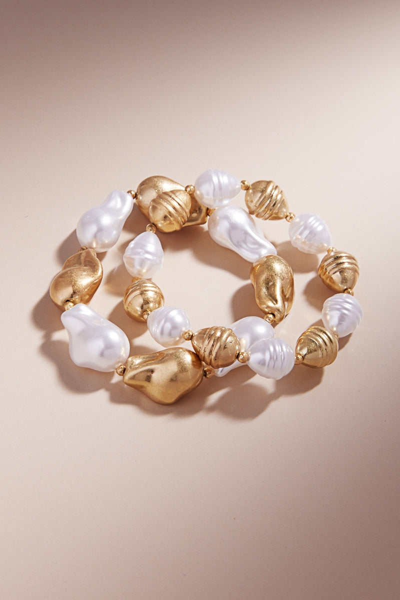 Pearl With Vintage Metal Beads Stretch Bracelet