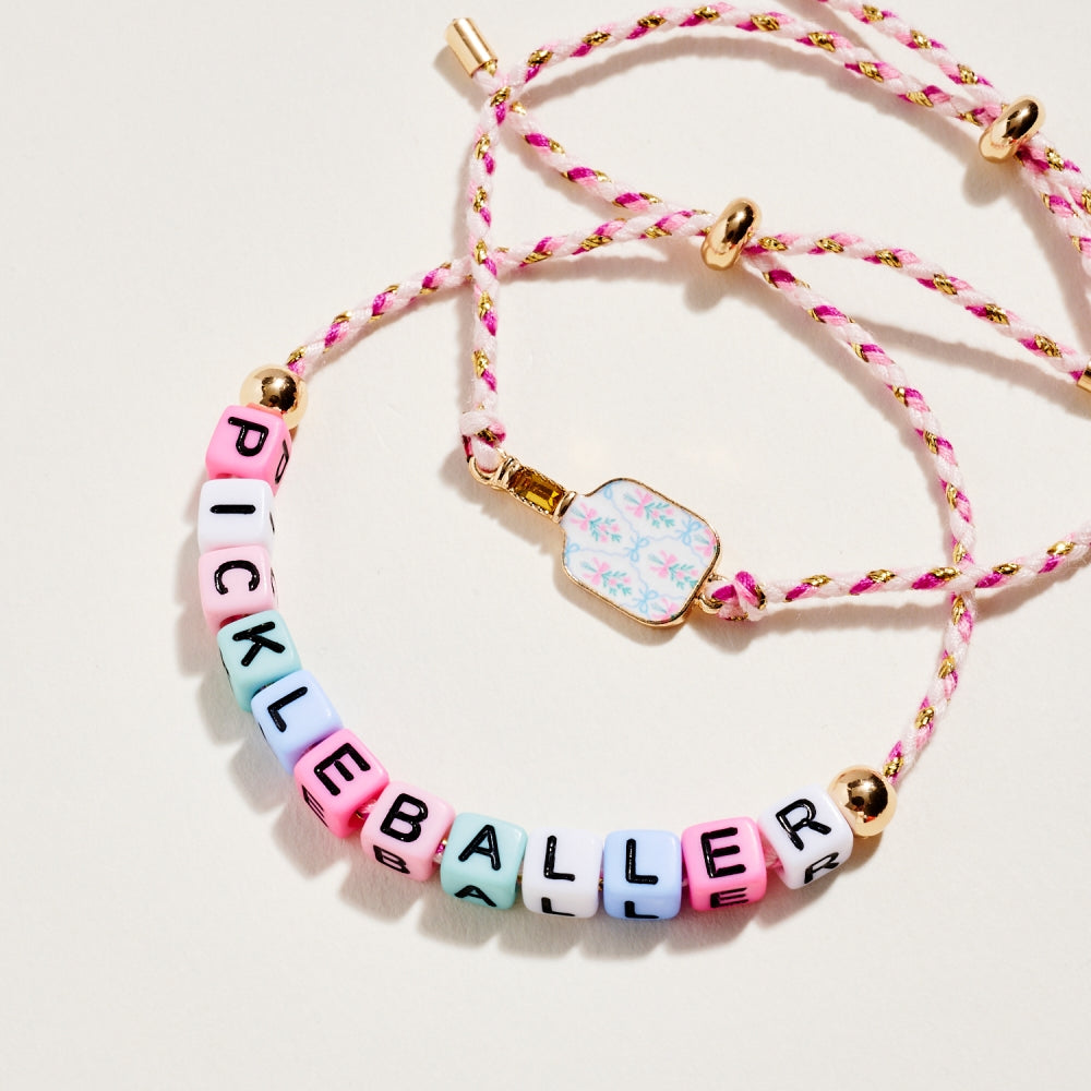 Pickleballer Bead Paddle Charm Pull Rope Bracelet