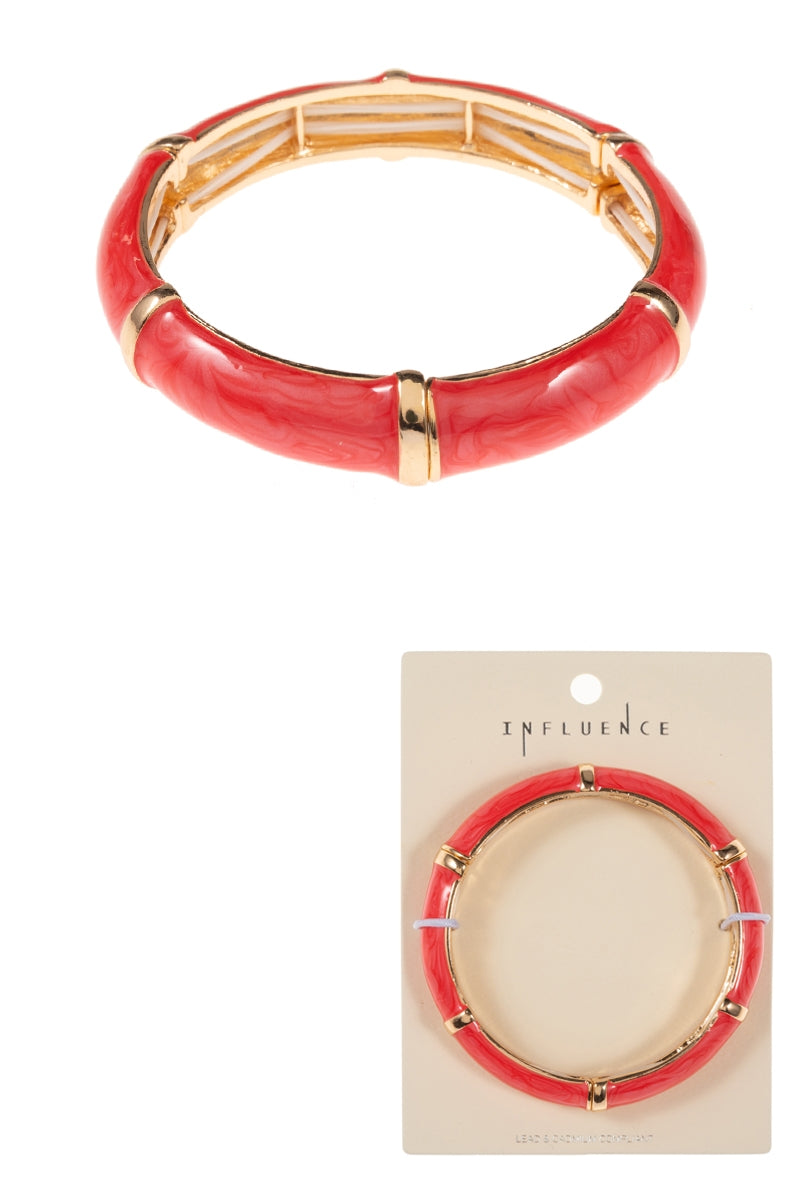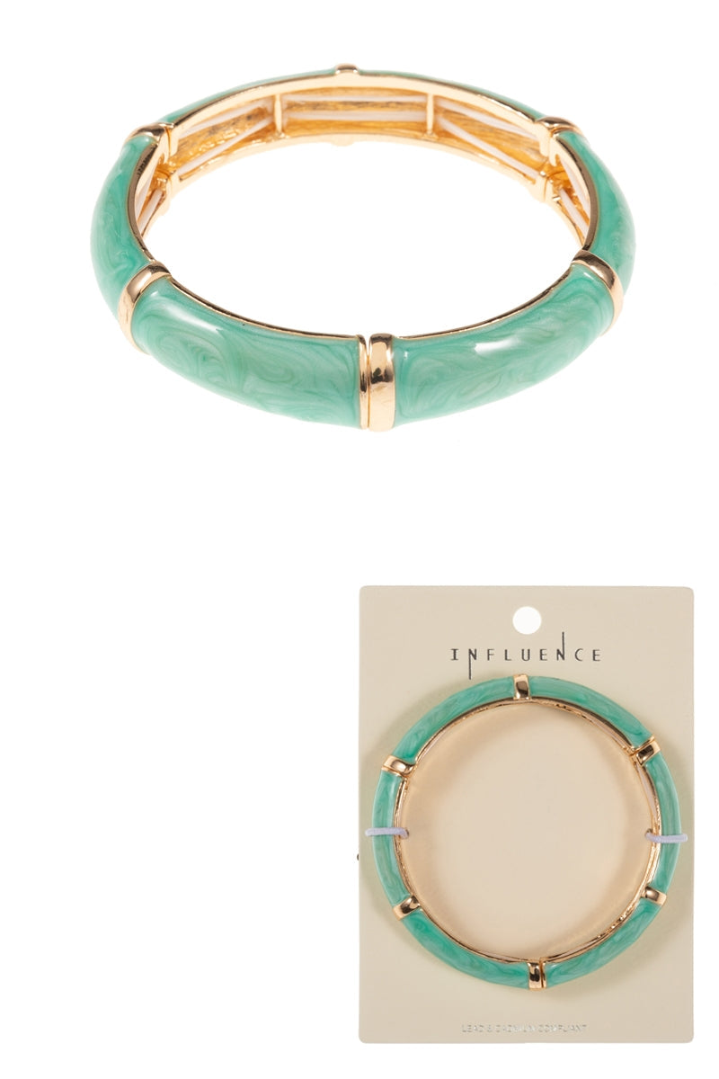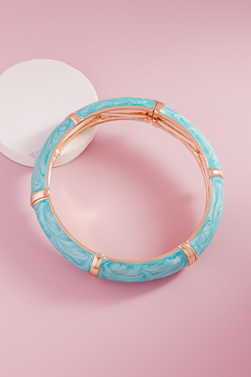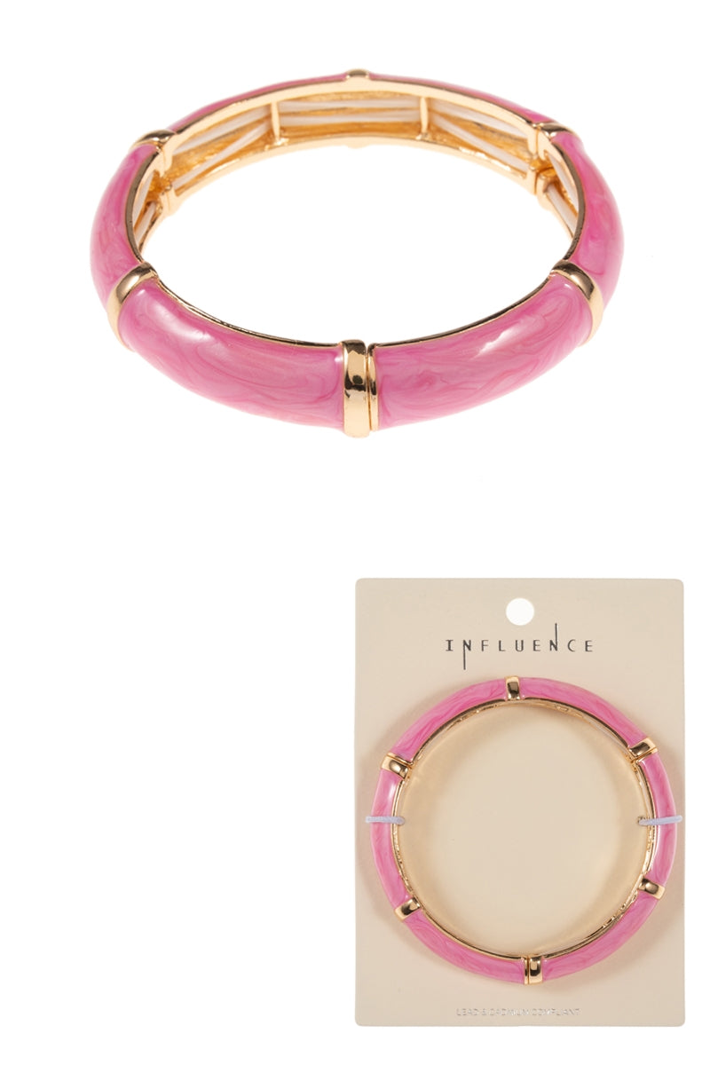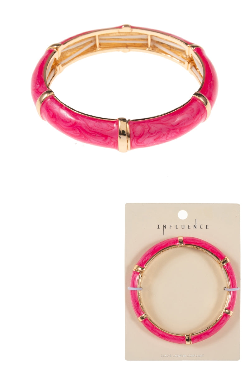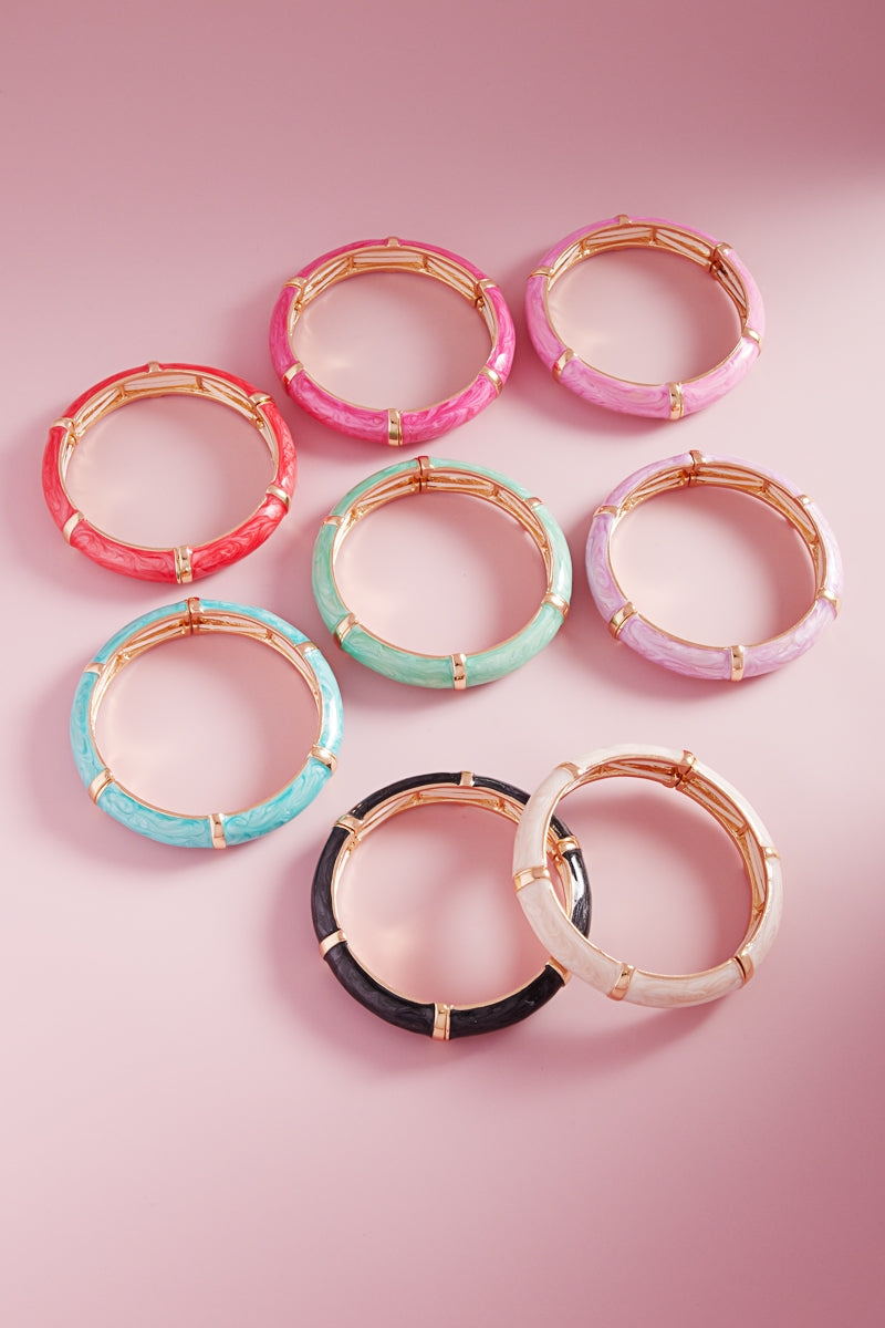 This 7.25 inch round shaped color-enamel bangle style stretch bracelet is the perfect accessory for any outfit. Made with high-quality materials, it offers both durability and style. The stretch bracelet design allows for a comfortable and flexible fit, making it ideal for everyday wear. Add a pop of color to your look with this versatile piece.