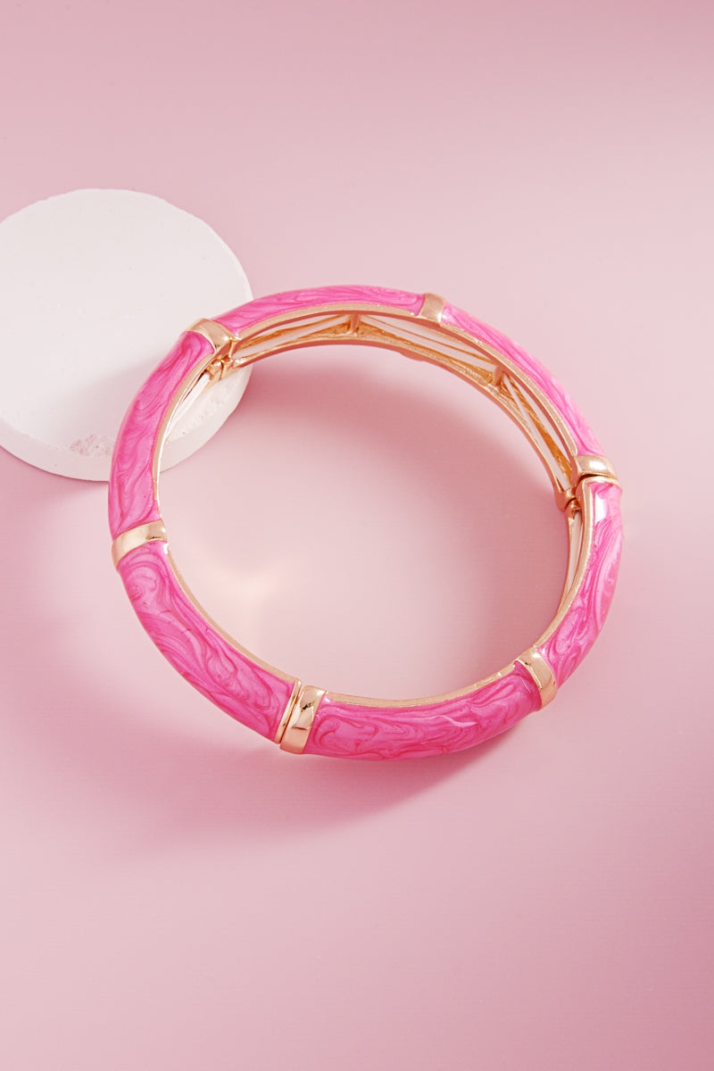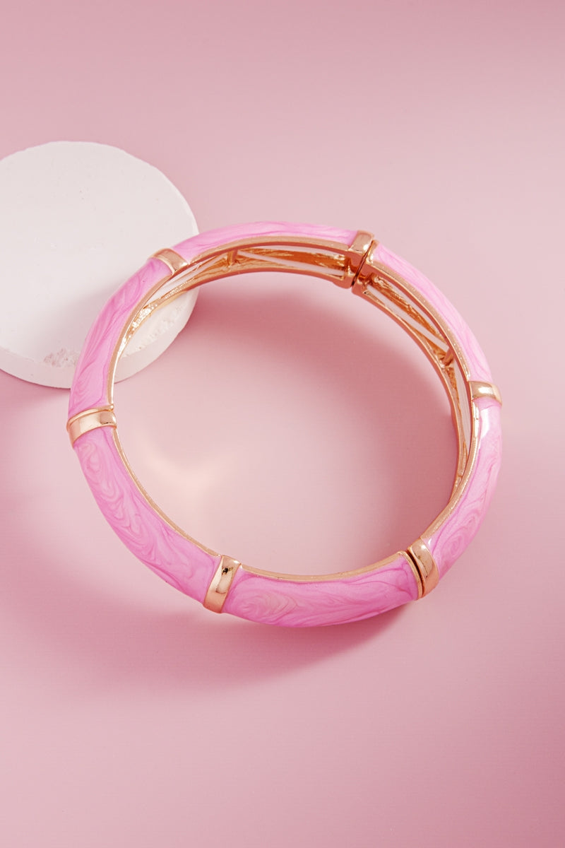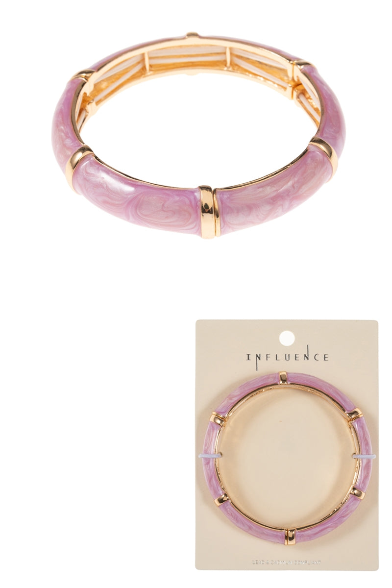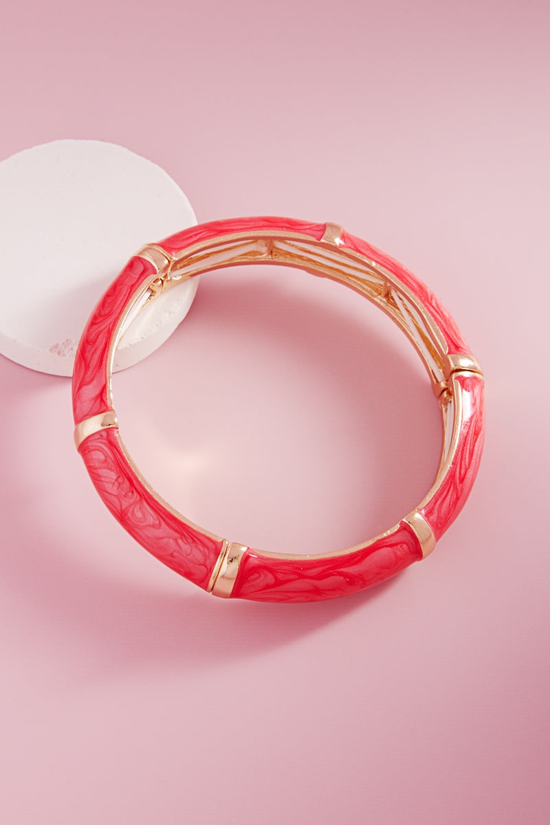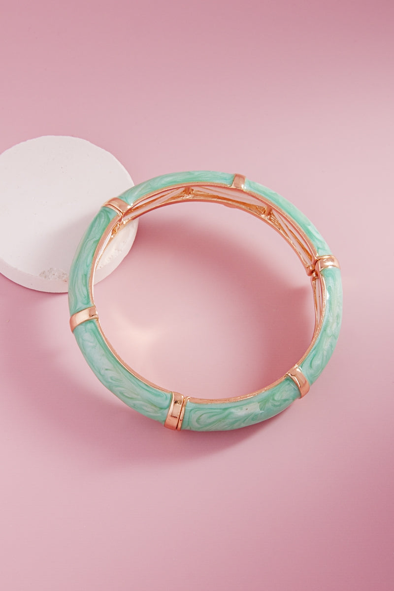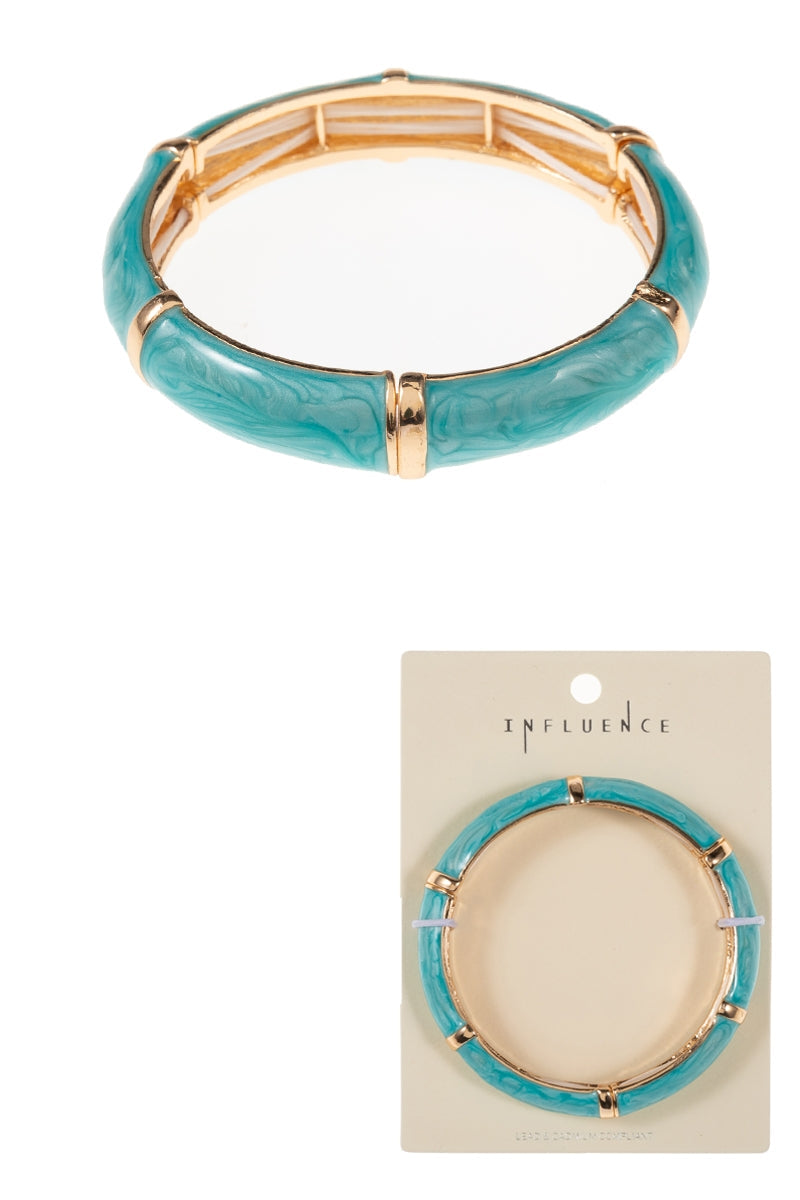 This 7.25 inch round shaped color-enamel bangle style stretch bracelet is the perfect accessory for any outfit. Made with high-quality materials, it offers both durability and style. The stretch bracelet design allows for a comfortable and flexible fit, making it ideal for everyday wear. Add a pop of color to your look with this versatile piece.