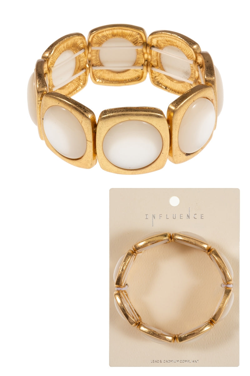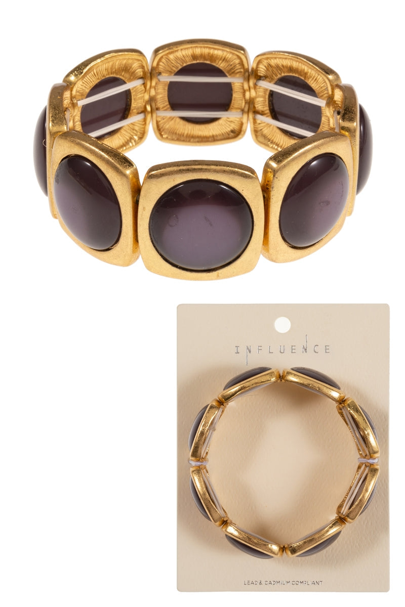 Round Faux Cats Eye Vintage Metal Stretch Bracelet