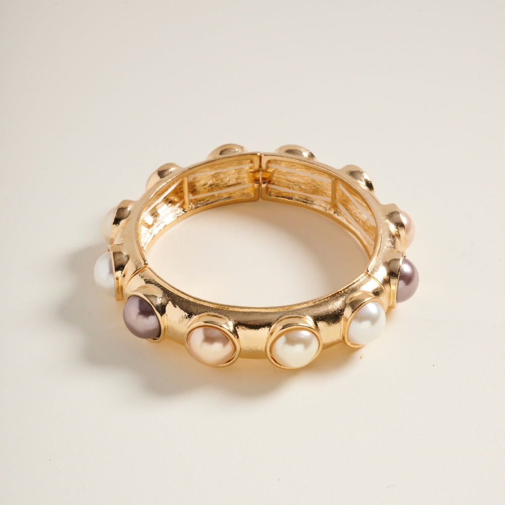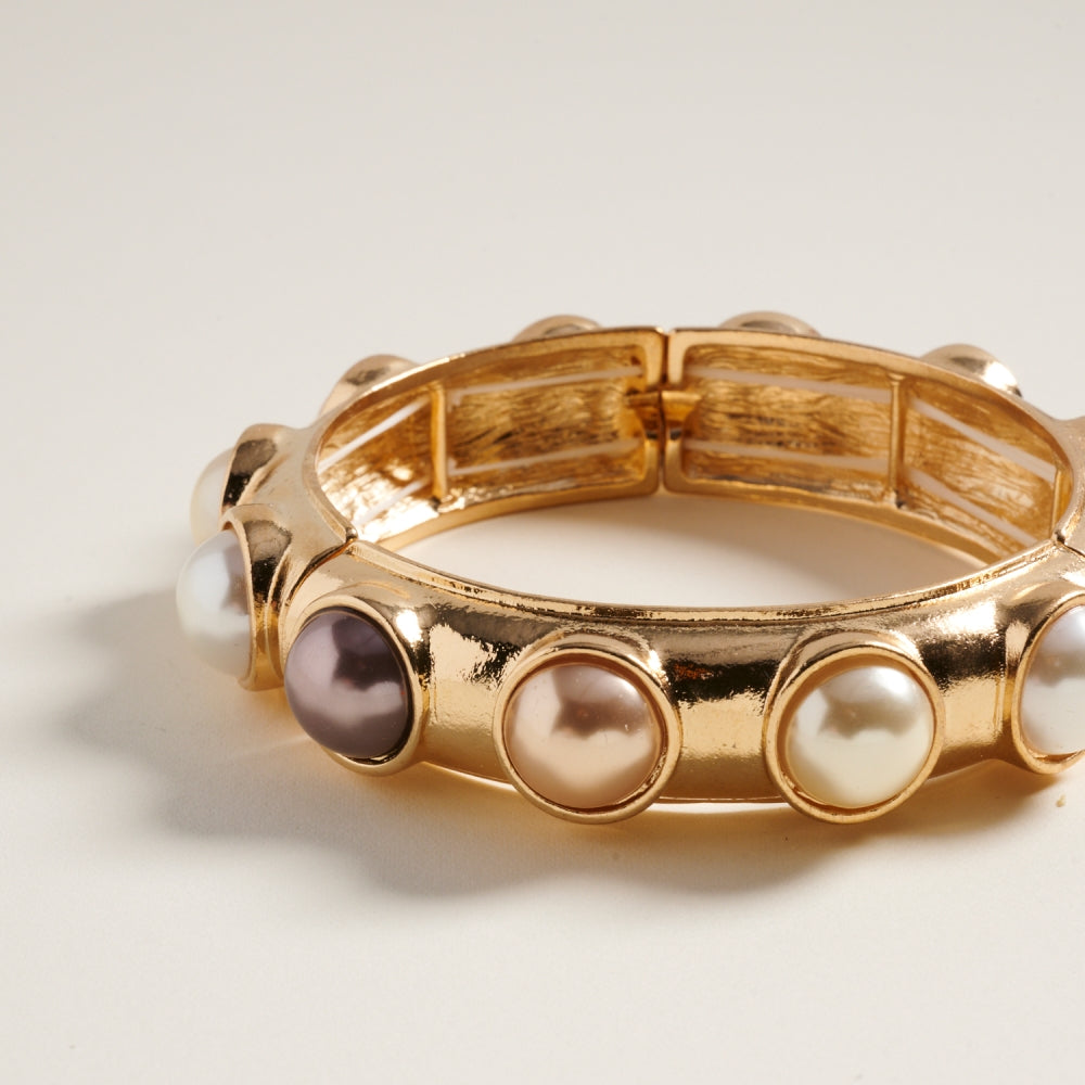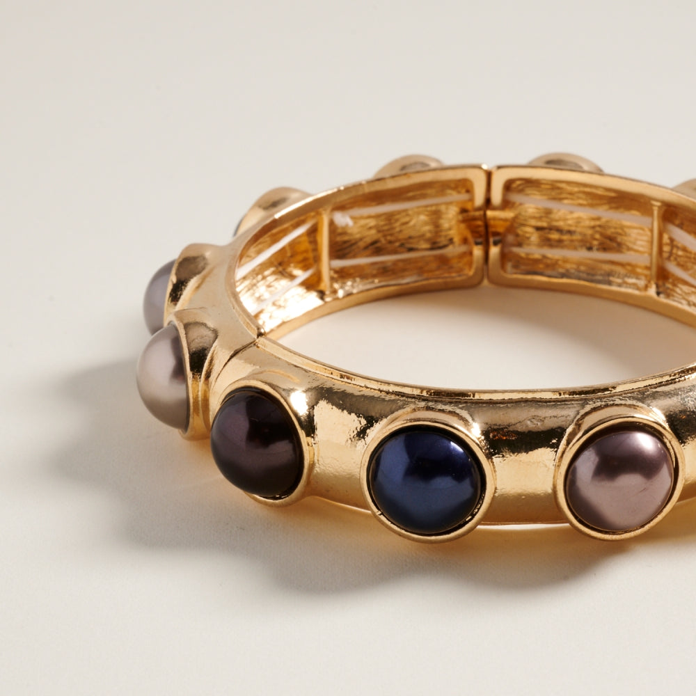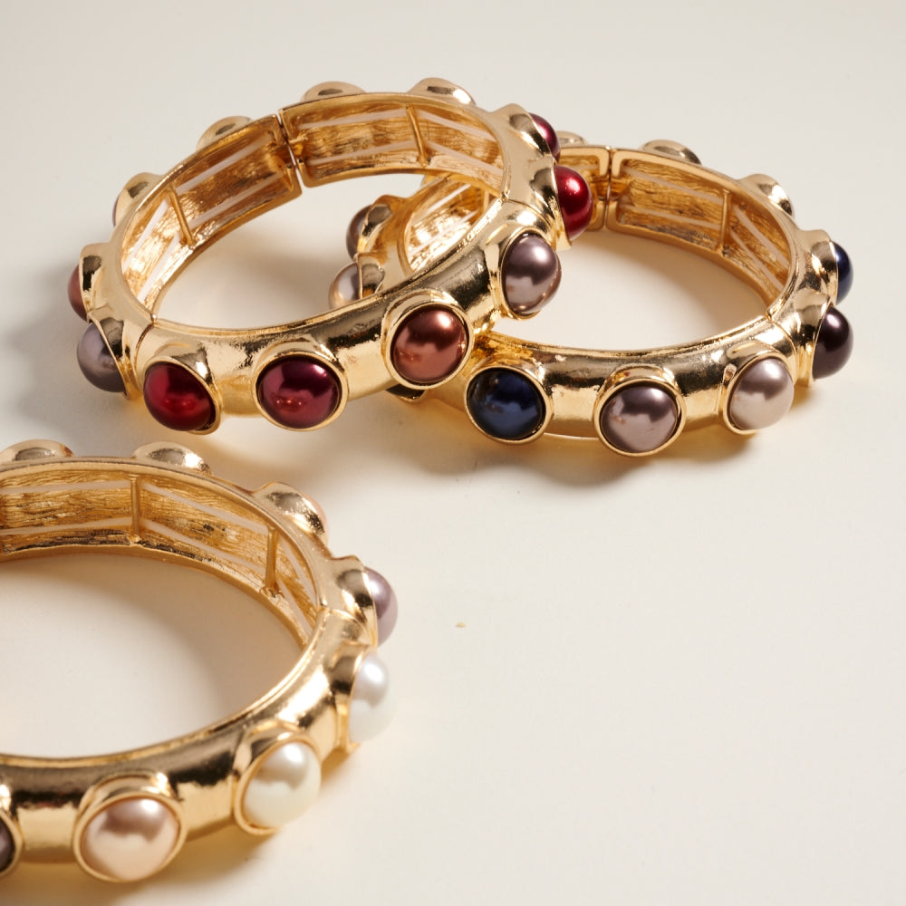 A modern take on a pearl classic, this bracelet features rounded cabochon-style pearls strung on a stretch band for all-day comfort. Elegant enough for evenings, simple enough for daily wear.