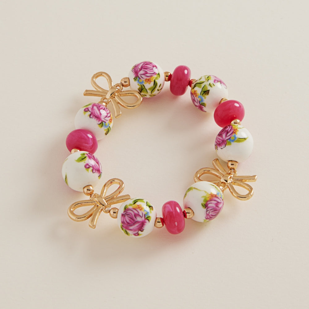 Round Shaped Ceramic Bead Ribbon Stretch Bracelet