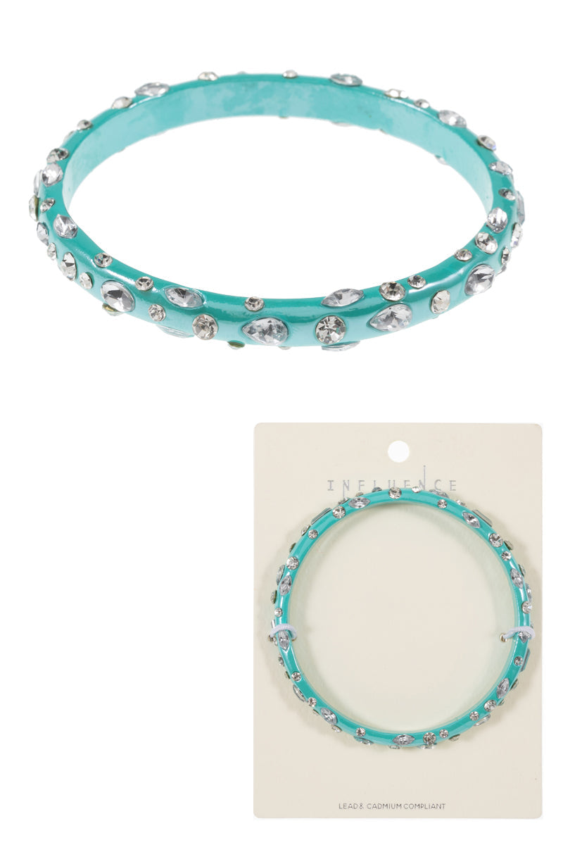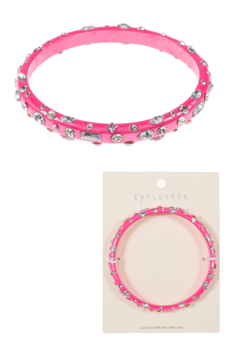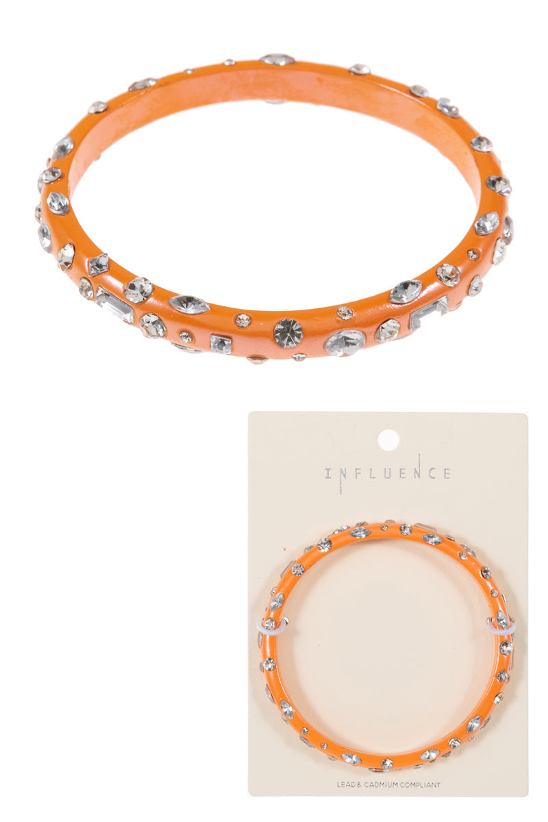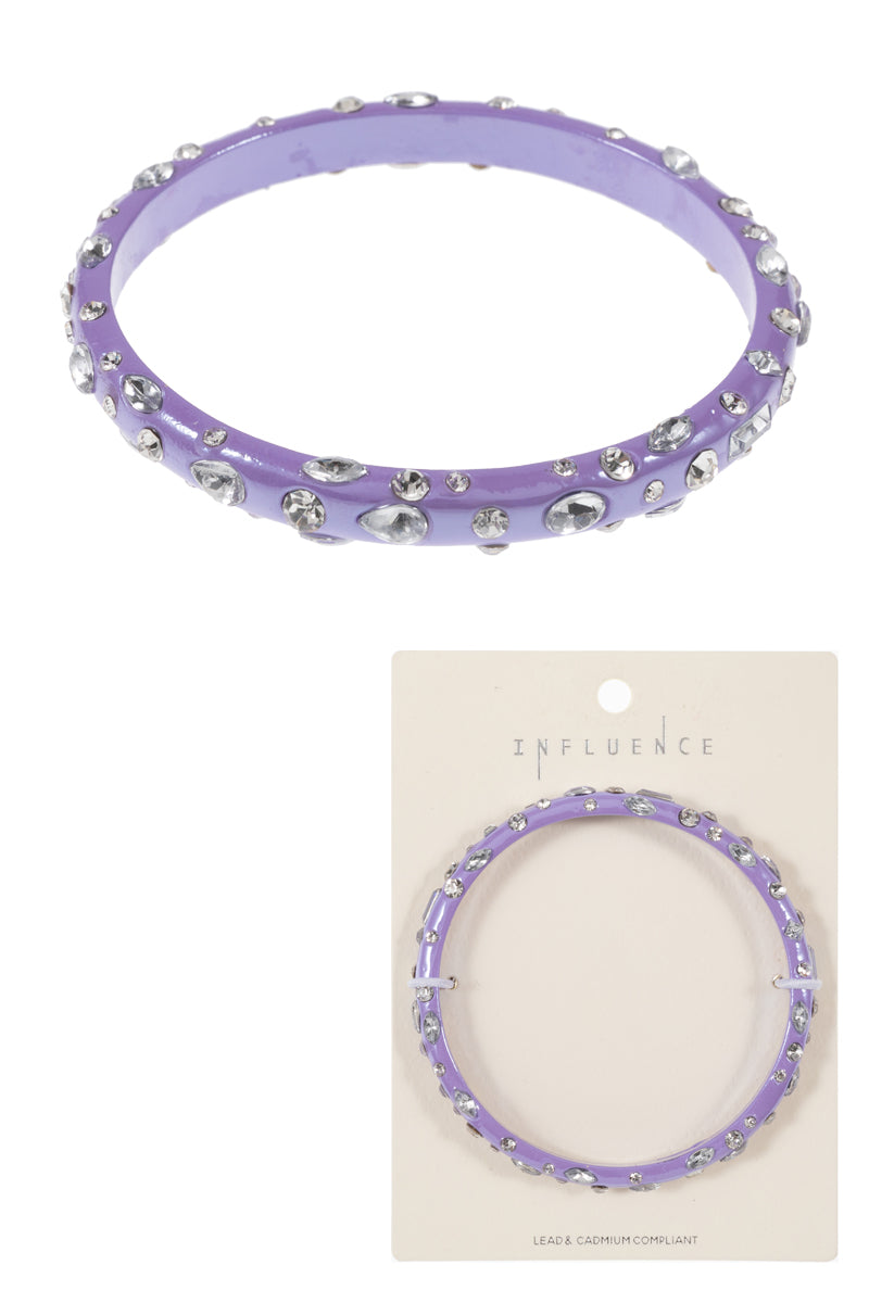 Round Shiny Color Coating W Stones Bangle Bracelet