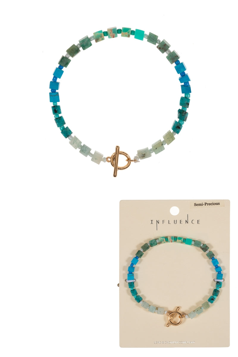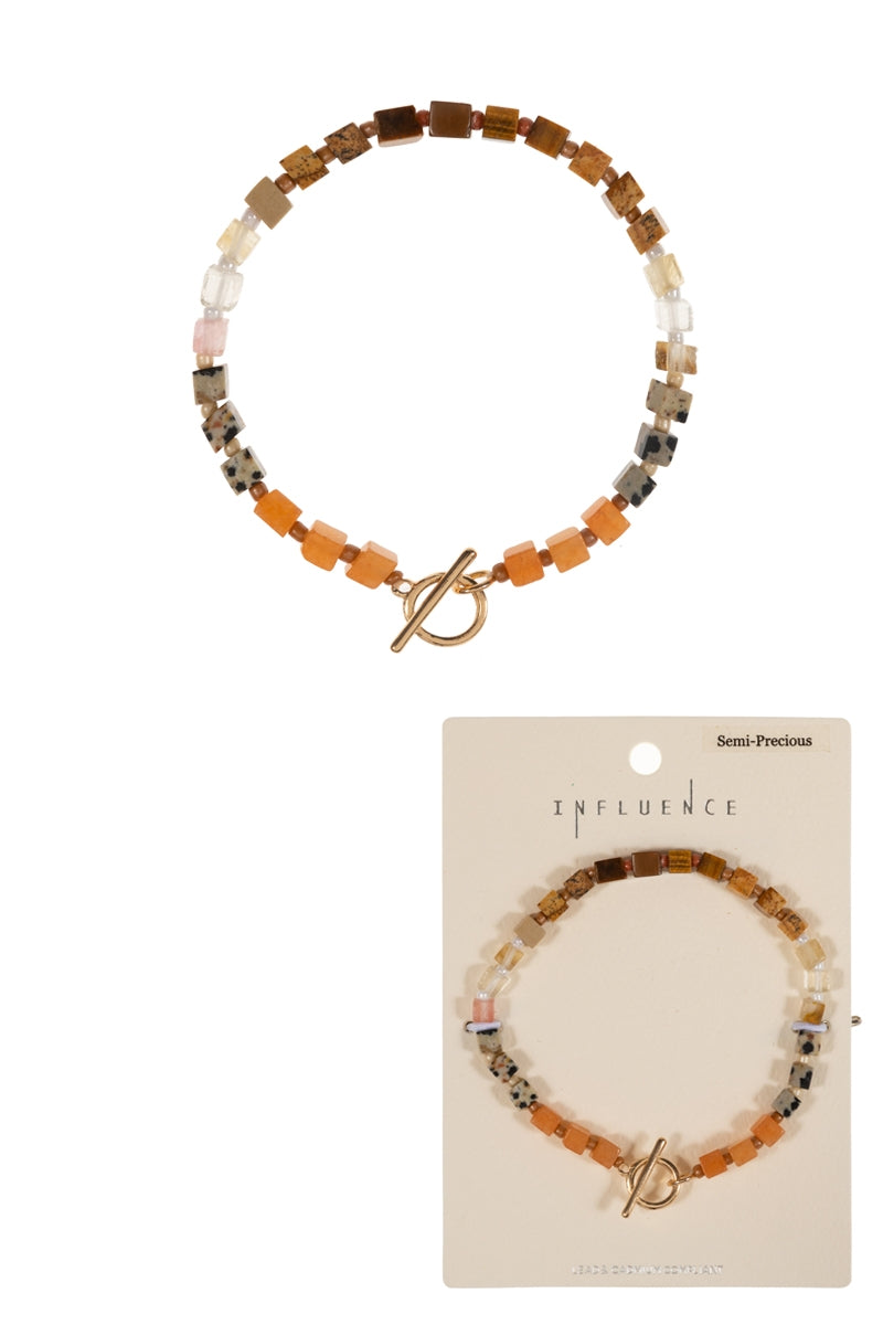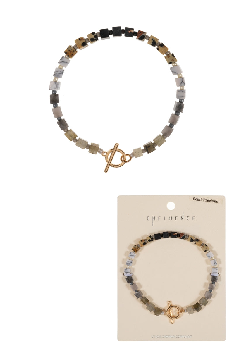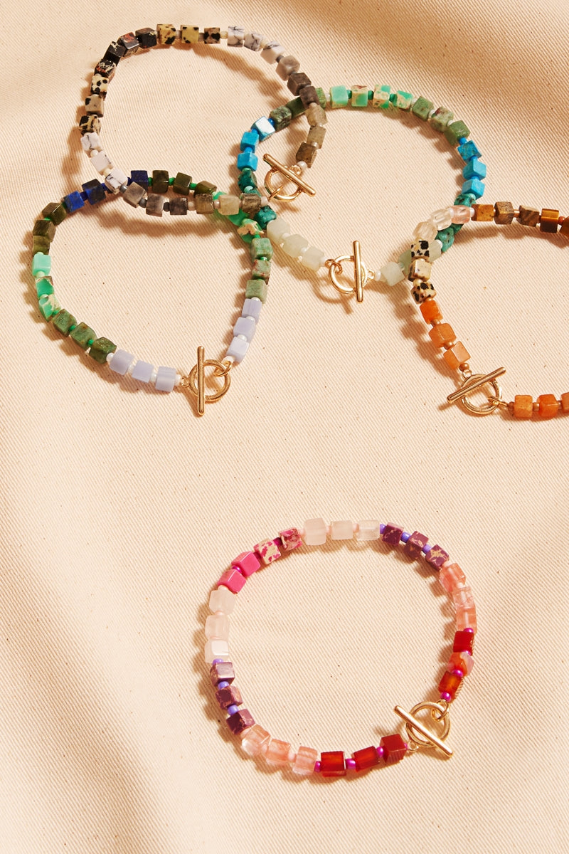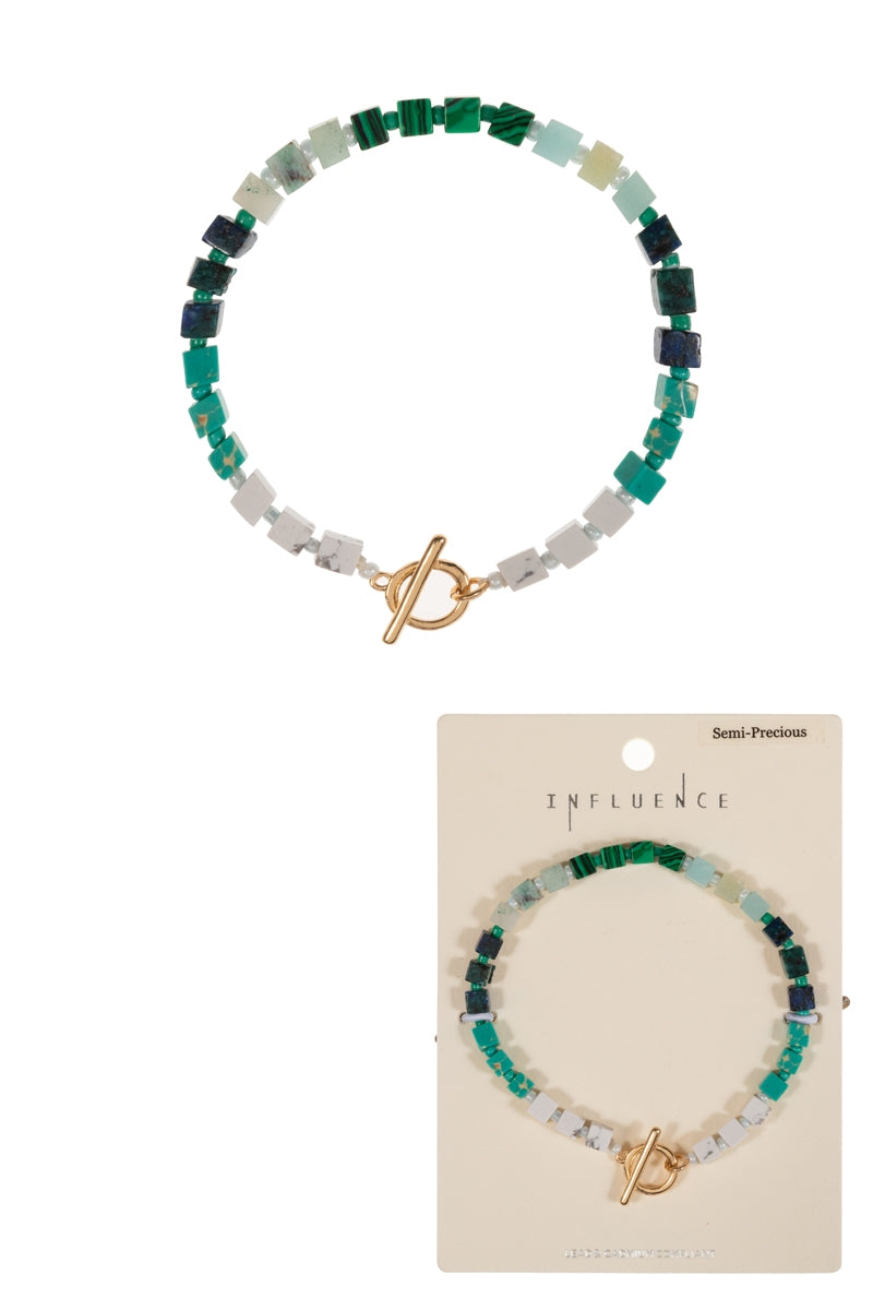 Square Semi Precious Stone Mixed Stretch Bracelet