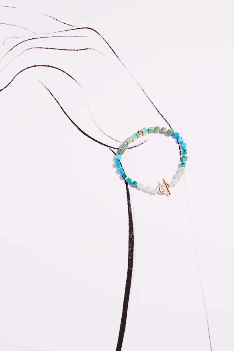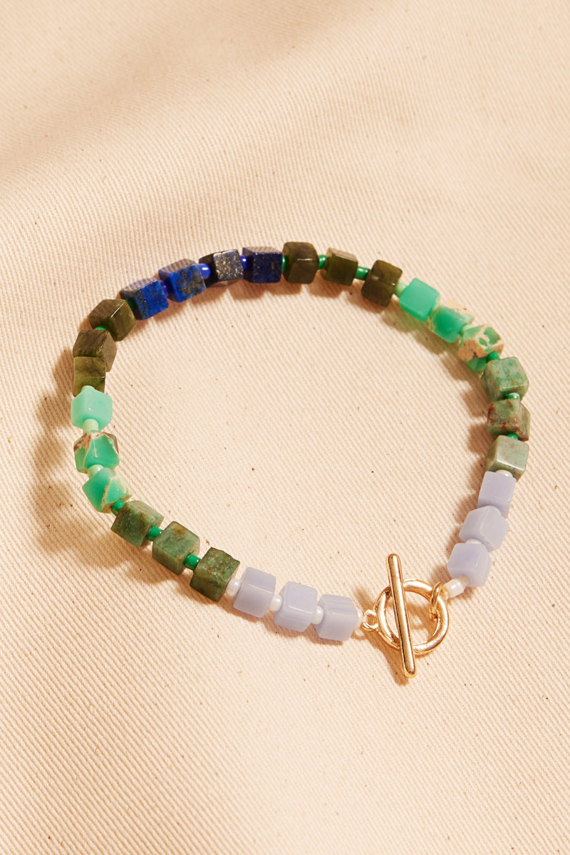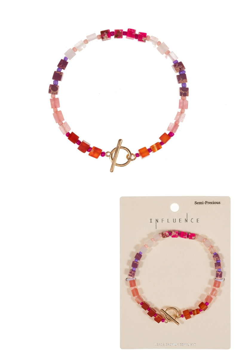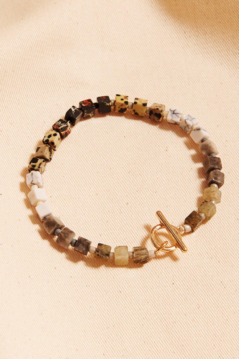 Square Semi Precious Stone Mixed Stretch Bracelet