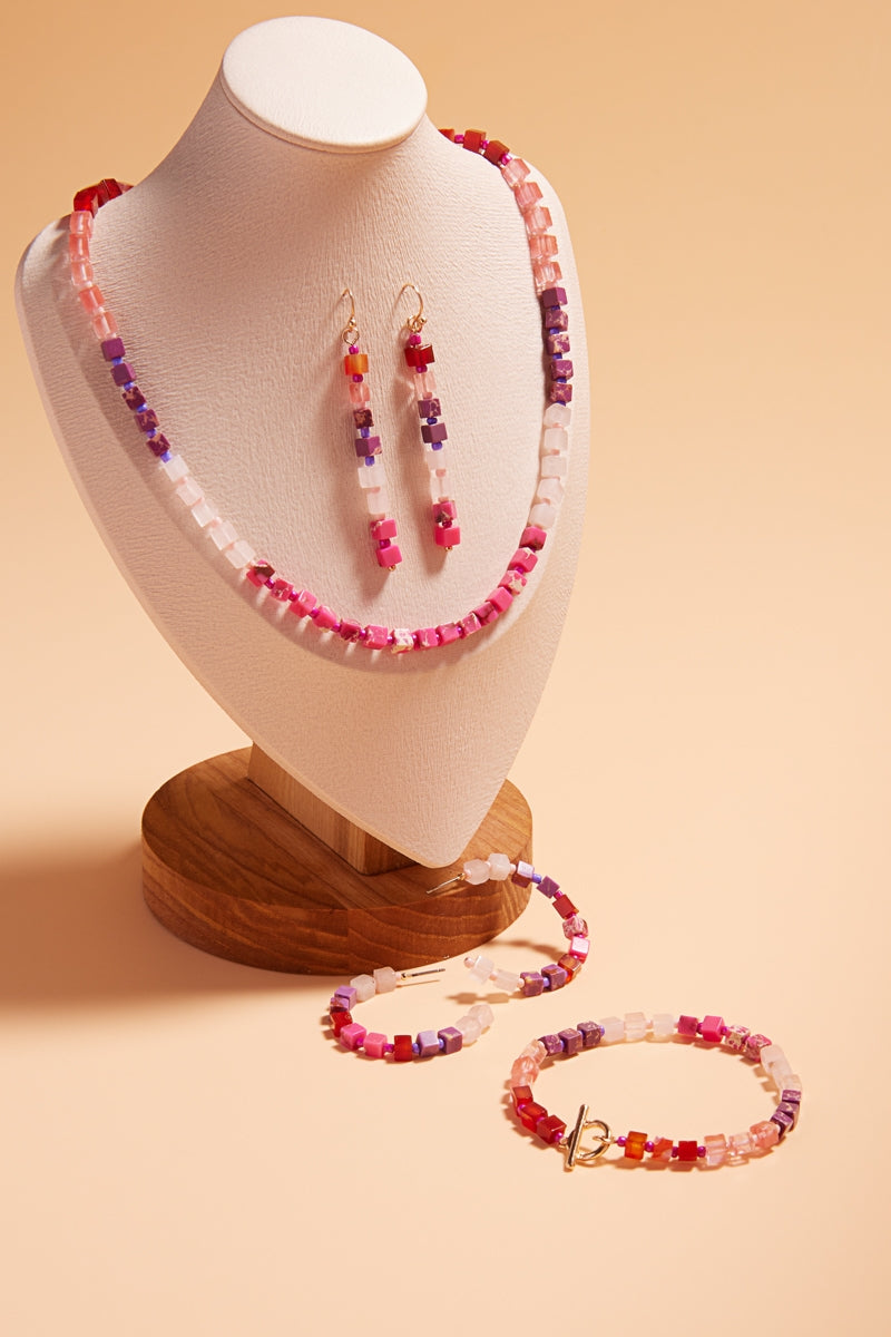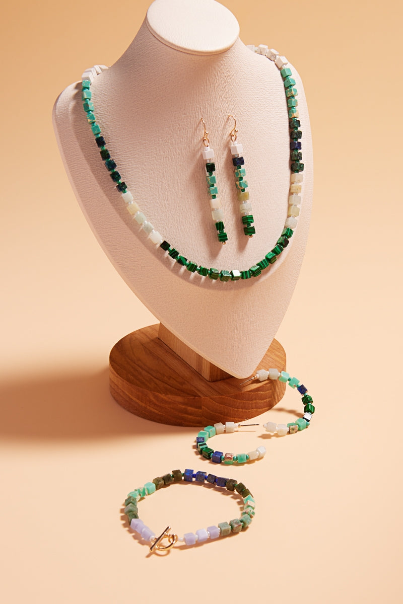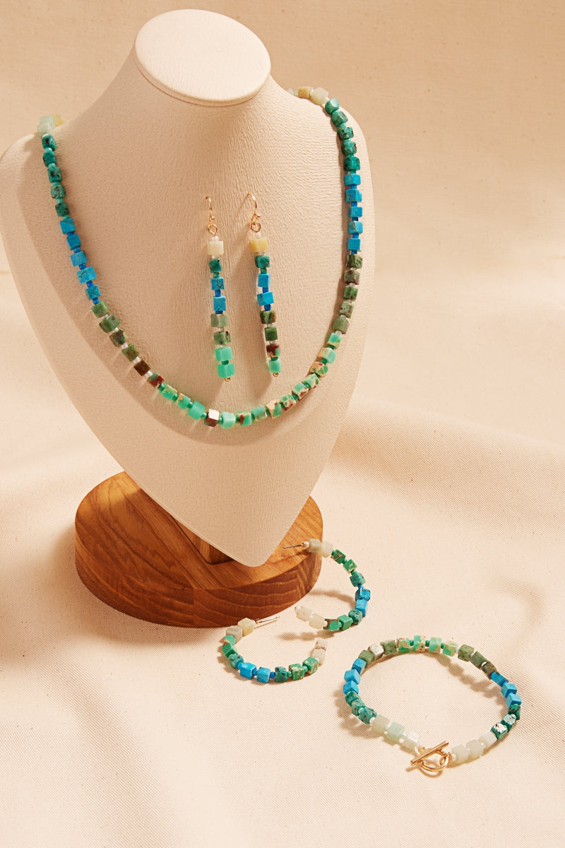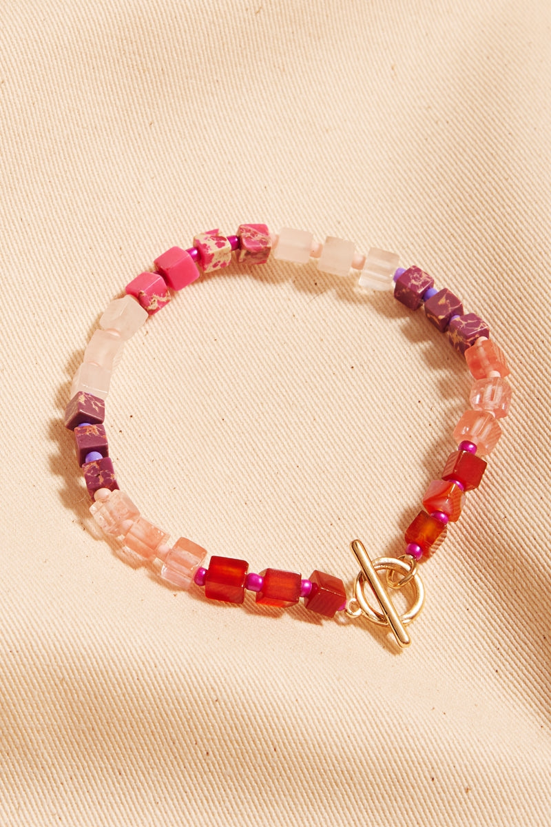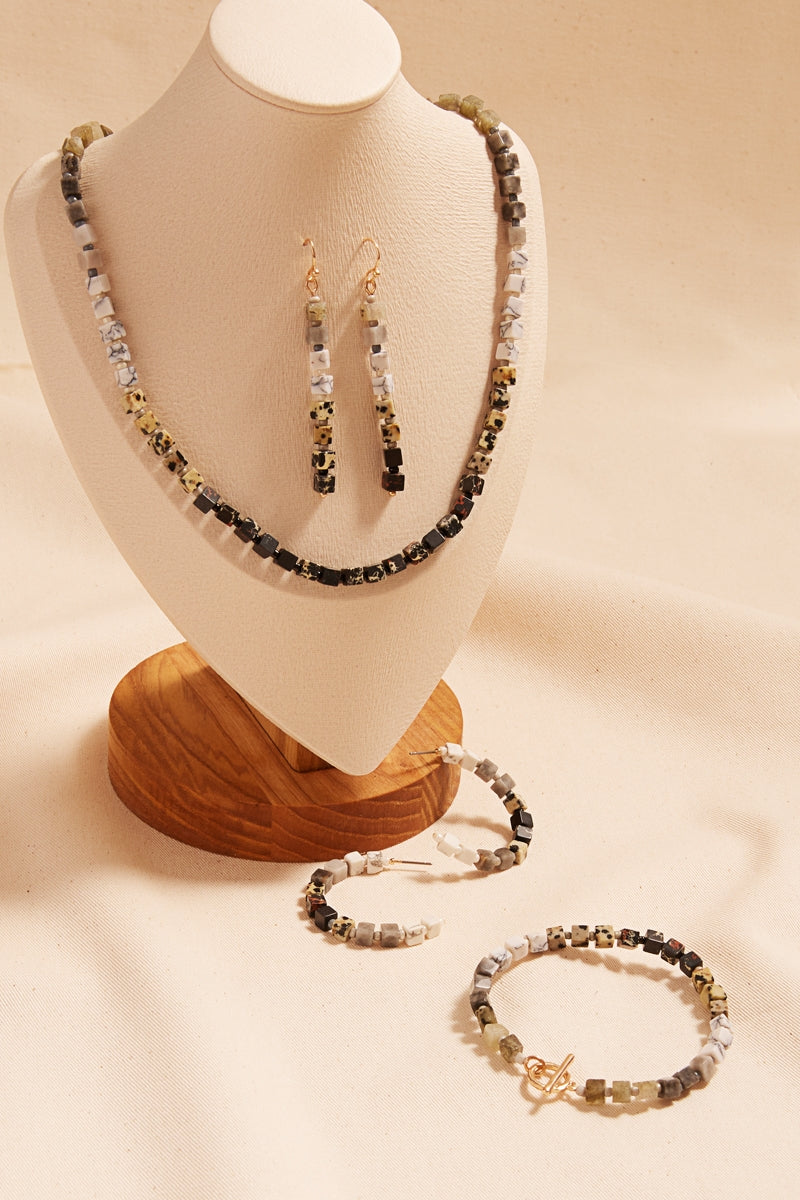 Square Semi Precious Stone Mixed Stretch Bracelet