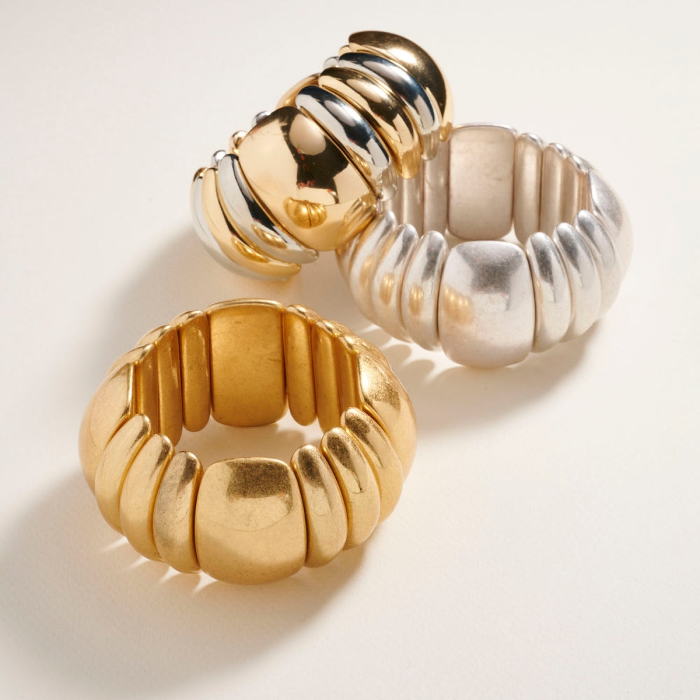 This vintage-inspired stretch bracelet features domed CCB beads that add texture and depth. Comfortable to wear, it's a timeless piece that pairs effortlessly with casual or dressy outfits.