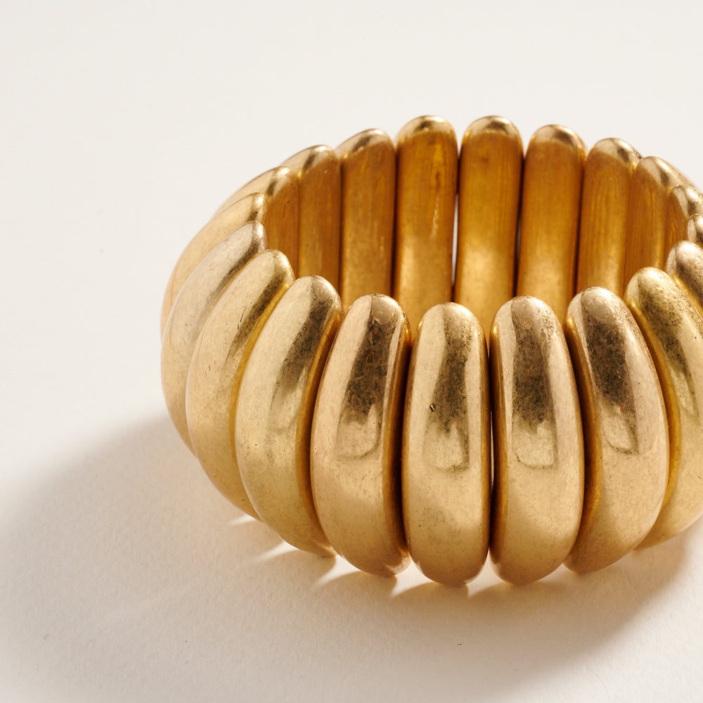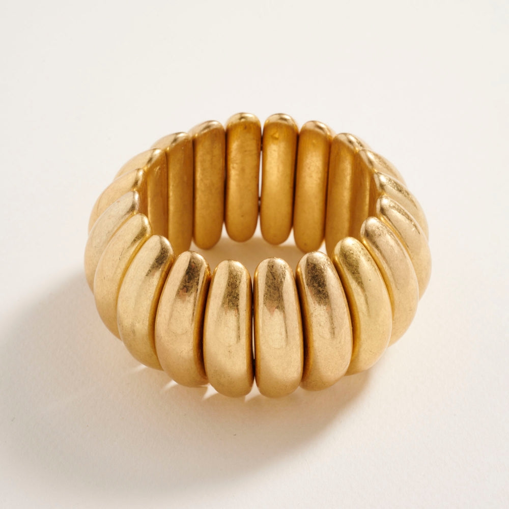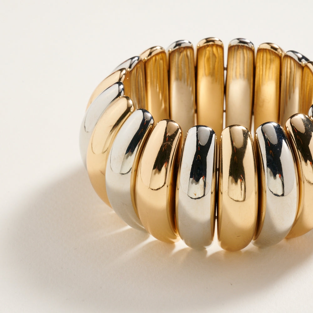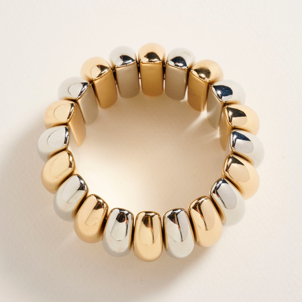 Expertly crafted with a vintage domed shape, this CCB stretch bracelet adds a touch of elegance to any outfit. Made to fit comfortably, it effortlessly blends style and comfort. Perfect for any occasion, this bracelet is a must-have for any fashion-forward individual.