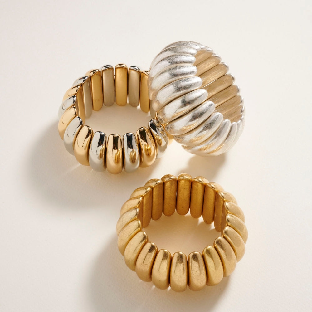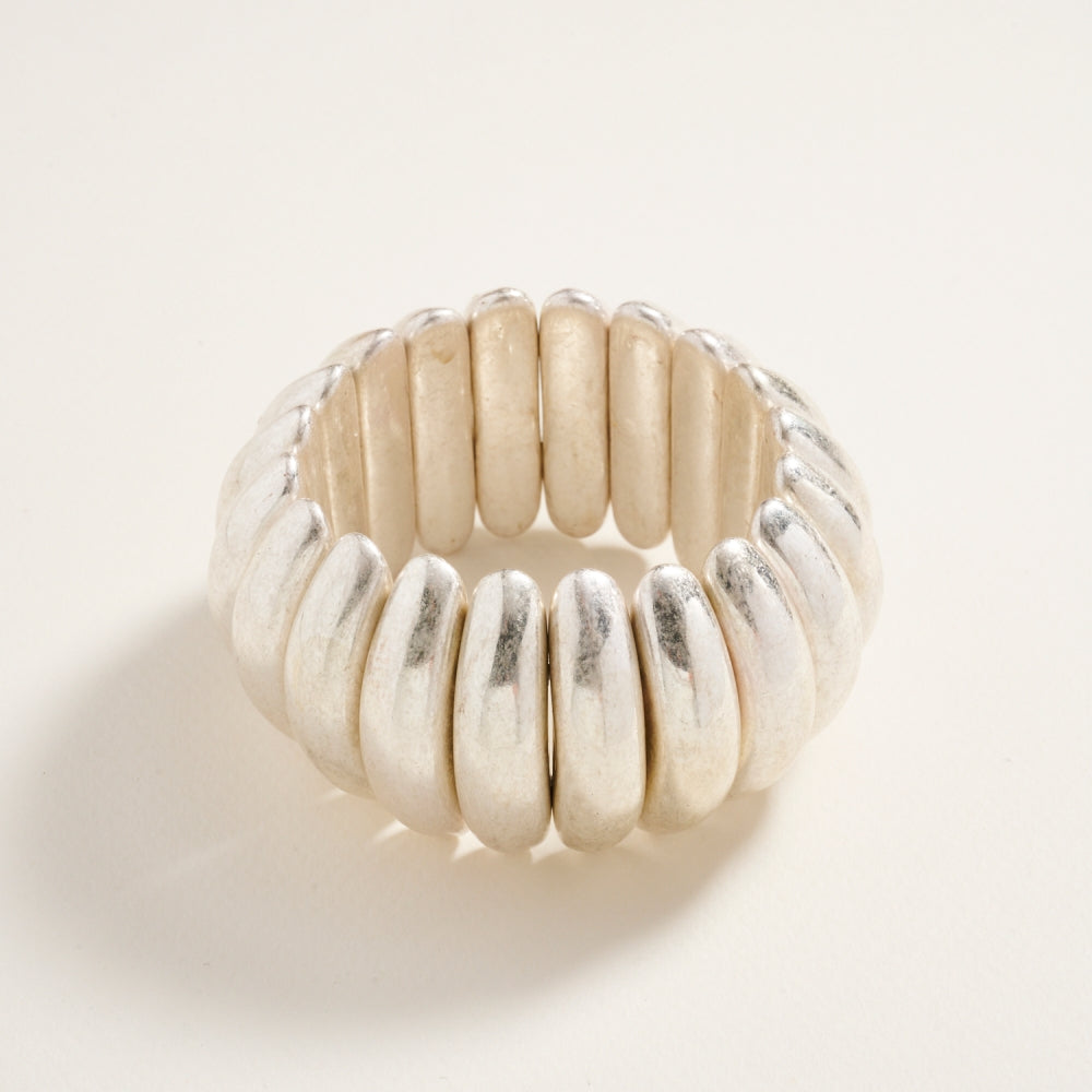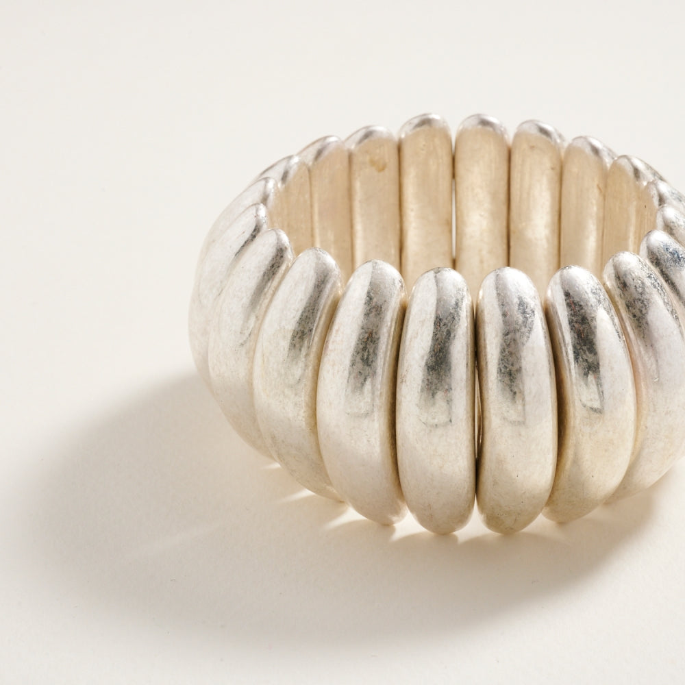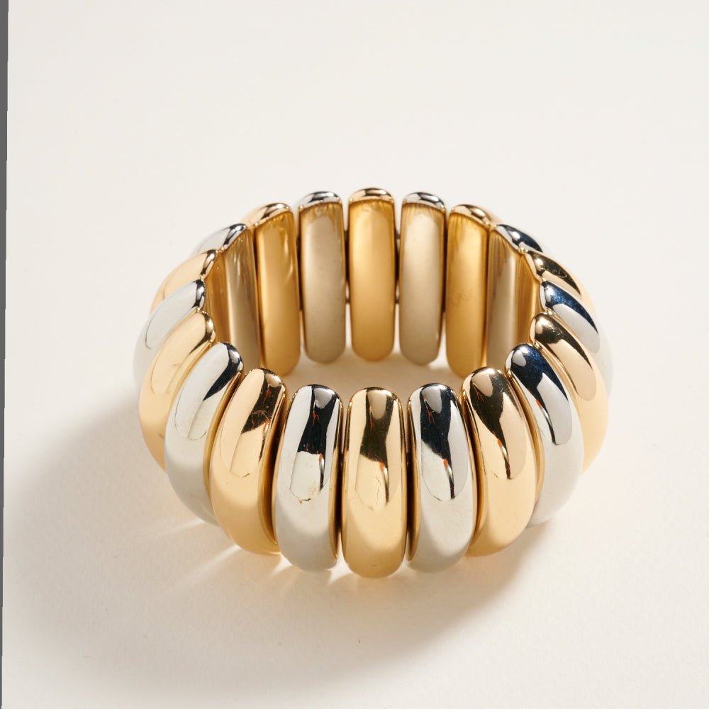 Expertly crafted with a vintage domed shape, this CCB stretch bracelet adds a touch of elegance to any outfit. Made to fit comfortably, it effortlessly blends style and comfort. Perfect for any occasion, this bracelet is a must-have for any fashion-forward individual.