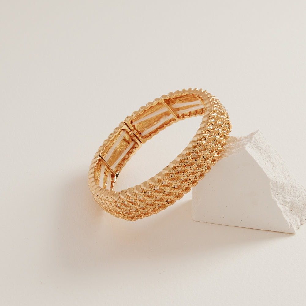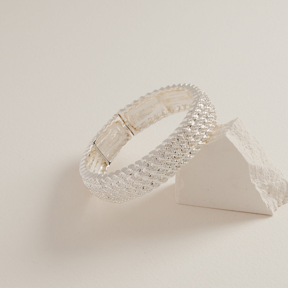 Add a hint of retro charm to your wrist with this vintage-inspired stretch bangle bracelet. Designed with a dotted metal texture and classic shape, it's the perfect accessory for anyone who loves subtle statement pieces.