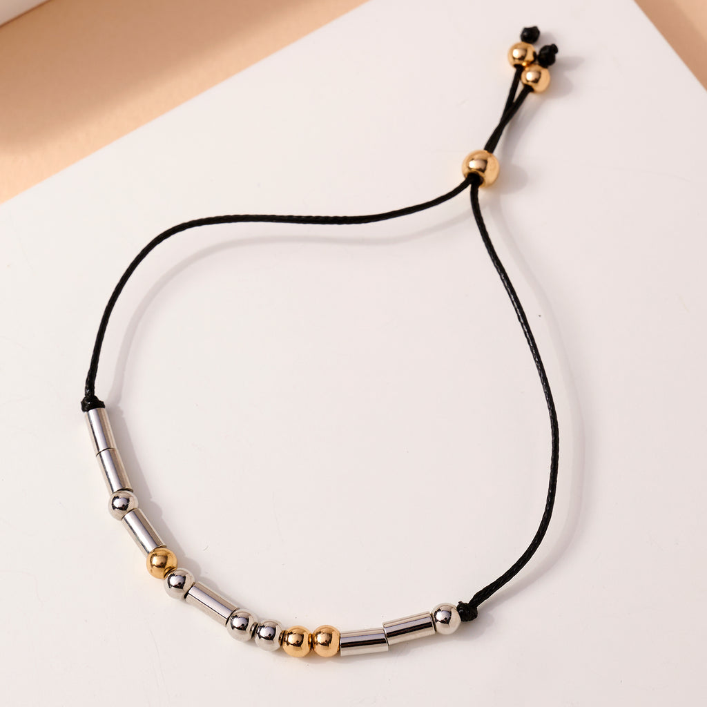 Oval Engraved Metal Charm Ceramic Bead Bracelet