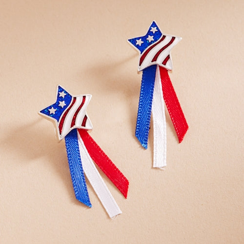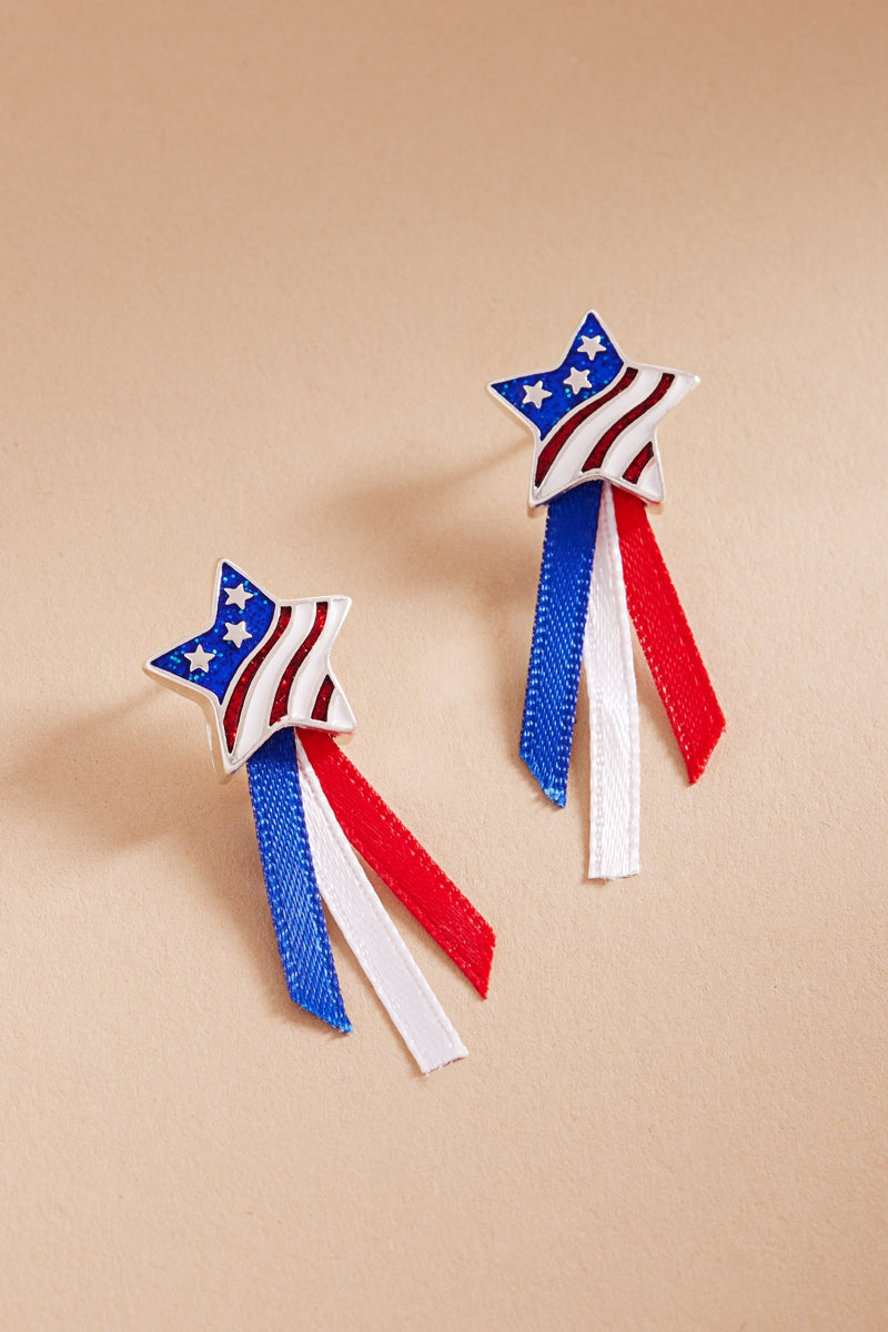 American Star Enamel Ribbon Tanium Post Earrings